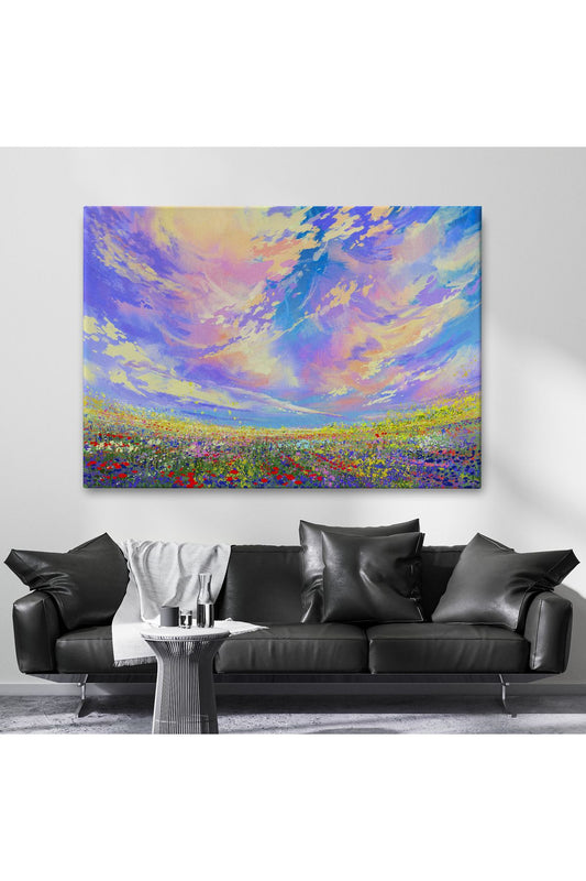 knspt seri001 Renkli Bulutlar Yağlıboya Görünüm Dekoratif Kanvas Duvar Tablosu-3474