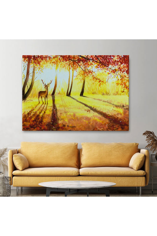 Dekoratif Kanvas Tablo-Ormanda Geyikler Duvar Tablosu 3682