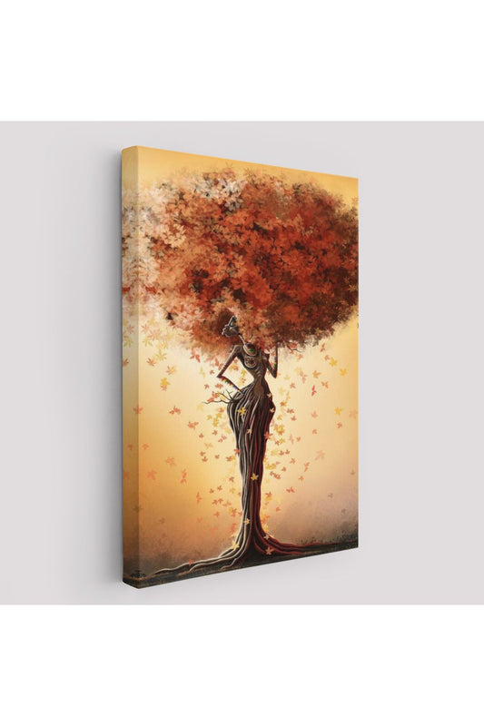 Dekoratif Duvar Tablosu-Afrikalı Ağaç Kadın ve Yaprak Saçları Kanvas Tablo 6313