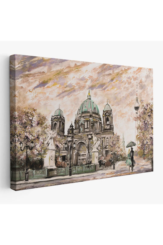 Berlin Sephora Katedrali Yağlıboya Görünüm Dekoratif Kanvas Tablo-3501