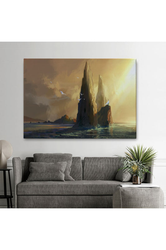 Kayaların Üzerinden Okyanusu İzleyen Beyaz Pelerinli Kadın Kanvas Tablo-5091
