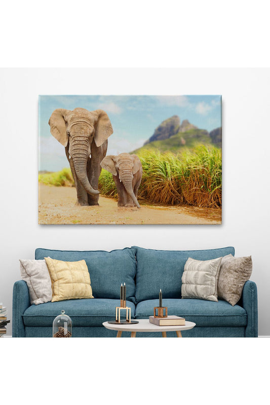 İndirim 60%Fil ve Yavrusu Dekoratif Kanvas Tablo 1144