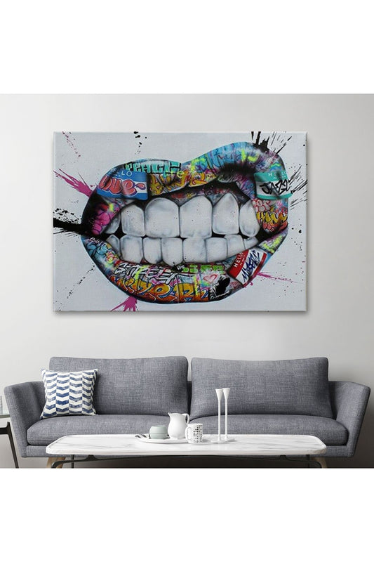 Mst seri001 Renkli Dudak Graffiti Kanvas Tablo, Banksy Sokak Sanatı-5413