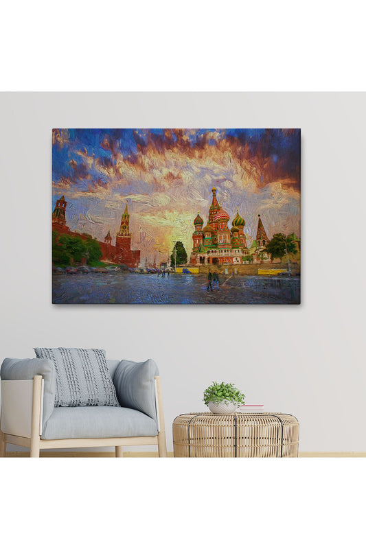 Kızıl Meydan'da Moskova Kremlin ve Aziz Vasil Katedrali Kanvas Tablosu-3696