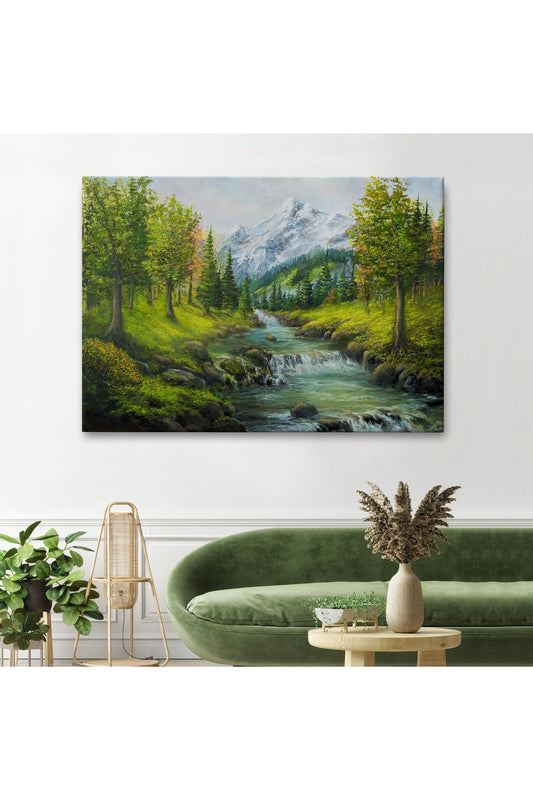 Karlı Dağlar ve İlk bahar Manzarası Duvar Tablosu-3527