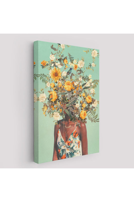 YB HG Çiçek Başlı Siyahi Kadın, Afrıkalı Kadın Kanvas Tablo -6079