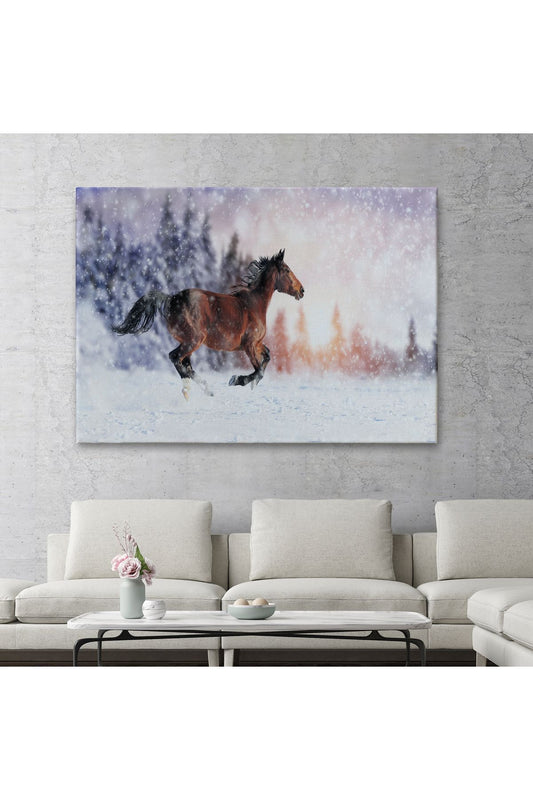 İndirim 60%Karda Koşan At Dekoratif Kanvas Tablo 1133