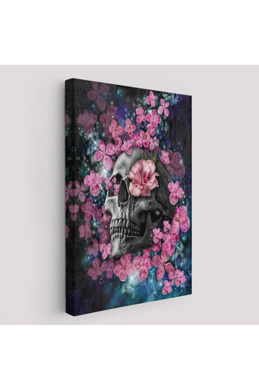 İskelet Kafa ve Pembe Çiçekler Kanvas Tablo Duvar Sanatı-5234