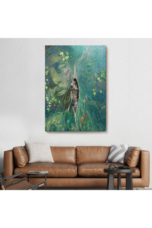 Lilyumların Altında Kano ile Gezen Duvar Tablosu-6163