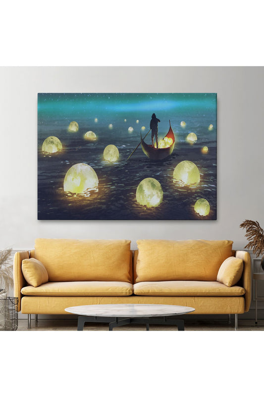 Denize Düşen Ayları Toplayan Adam Yağlıboya Görünüm Tablo-3575