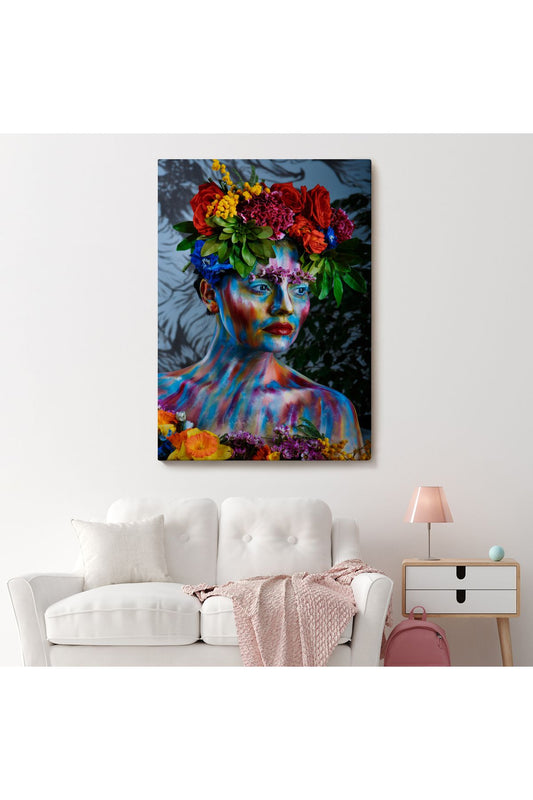 İndirim 60%Renkli Çiçek Taçlı Kız Duvar Tablosu-5991