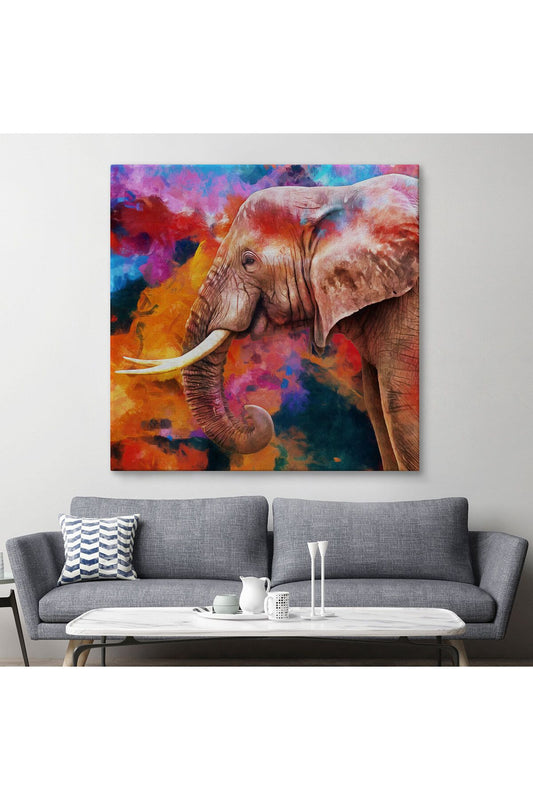 Renkli Fil Yağlıboya Görünüm Dekoratif Kanvas Duvar Tablosu-5842