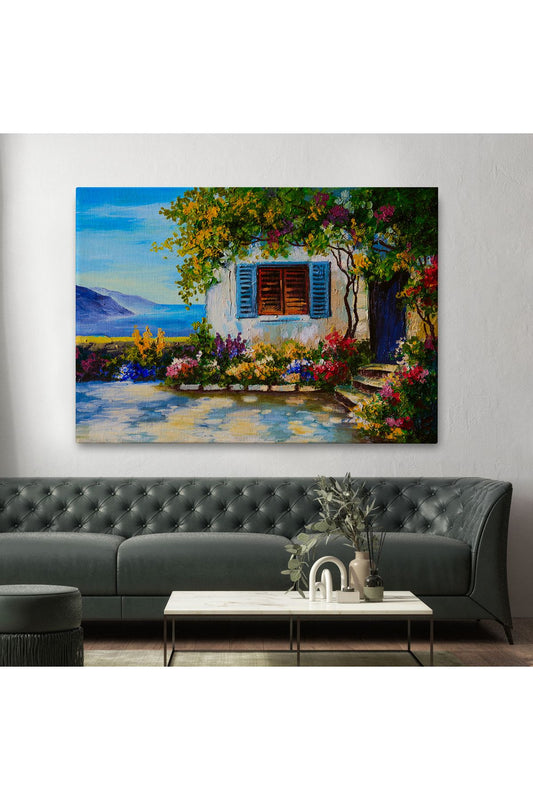 Deniz Manzaralı Güzel Ev Dekoratif Kanvas Duvar Tablosu-3437