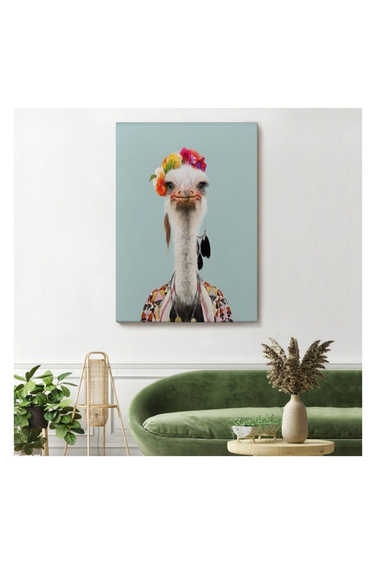 Kanvas, Duvar Tablosu, Dekoratif, Hippi Devekuşu Hayvan Temalı 6181 EGKNV