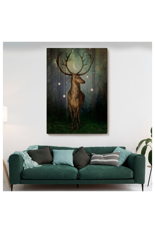 Kanvas, Duvar Tablosu, Dekoratif, Gece Vakti Orman'daki Geyik 6309 EGKNV