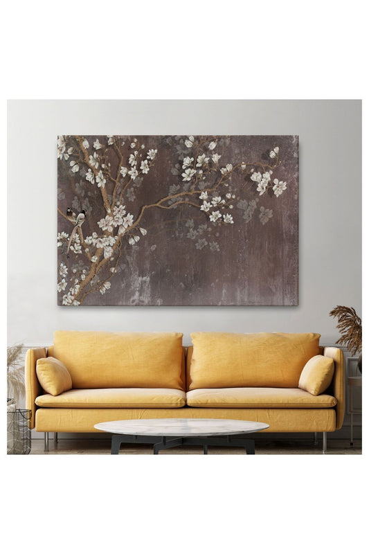 Kanvas, Duvar Tablosu, Dekoratif, Yağlıboya Görünüm Ağaçta Beyaz Çiçekler 3736 EGKNV