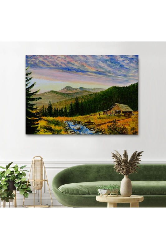 Köy Ve Akarsu Manzaralı Dekoratif Kanvas Duvar Tablosu-3425
