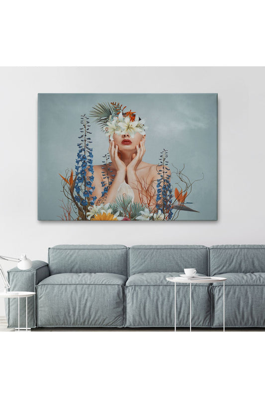 Çiçekler İçindeki Güzel Kadın Portresi Kanvas Tablo-5024