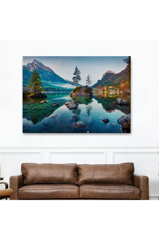 Özel Tasarım, Dekortif BaskıHintersee Gölü Almanya Dekoratif Kanvas Duvar Tablosu-3563