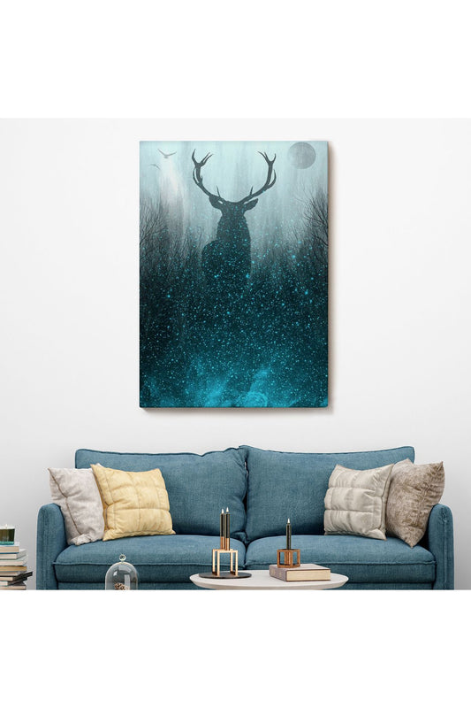 Geyiğin Gece Ormandaki Silüeti Duvar Tablosu-6369