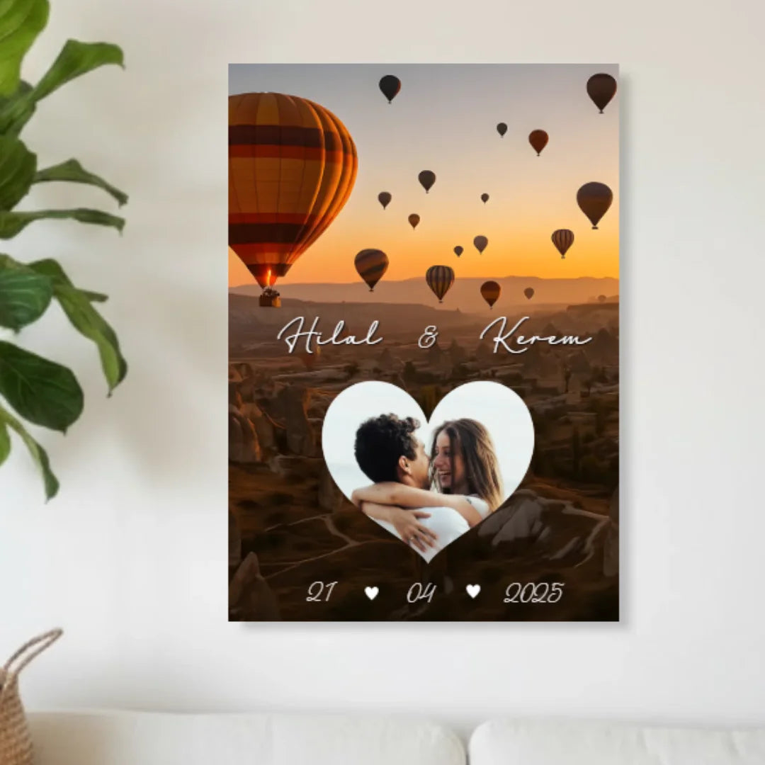 Kişiye Özel Kalp Çerçeveli Kanvas Tablo - Kapadokya Tema