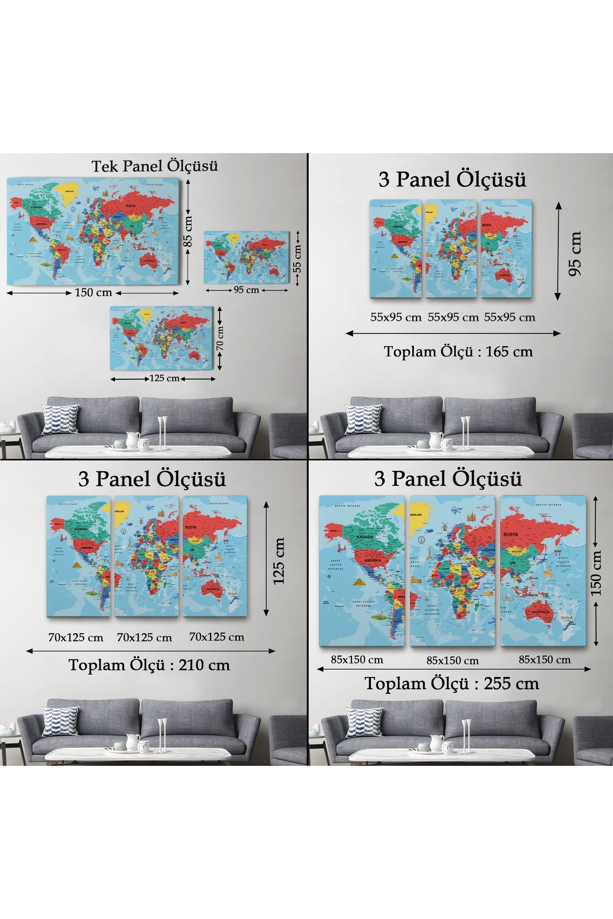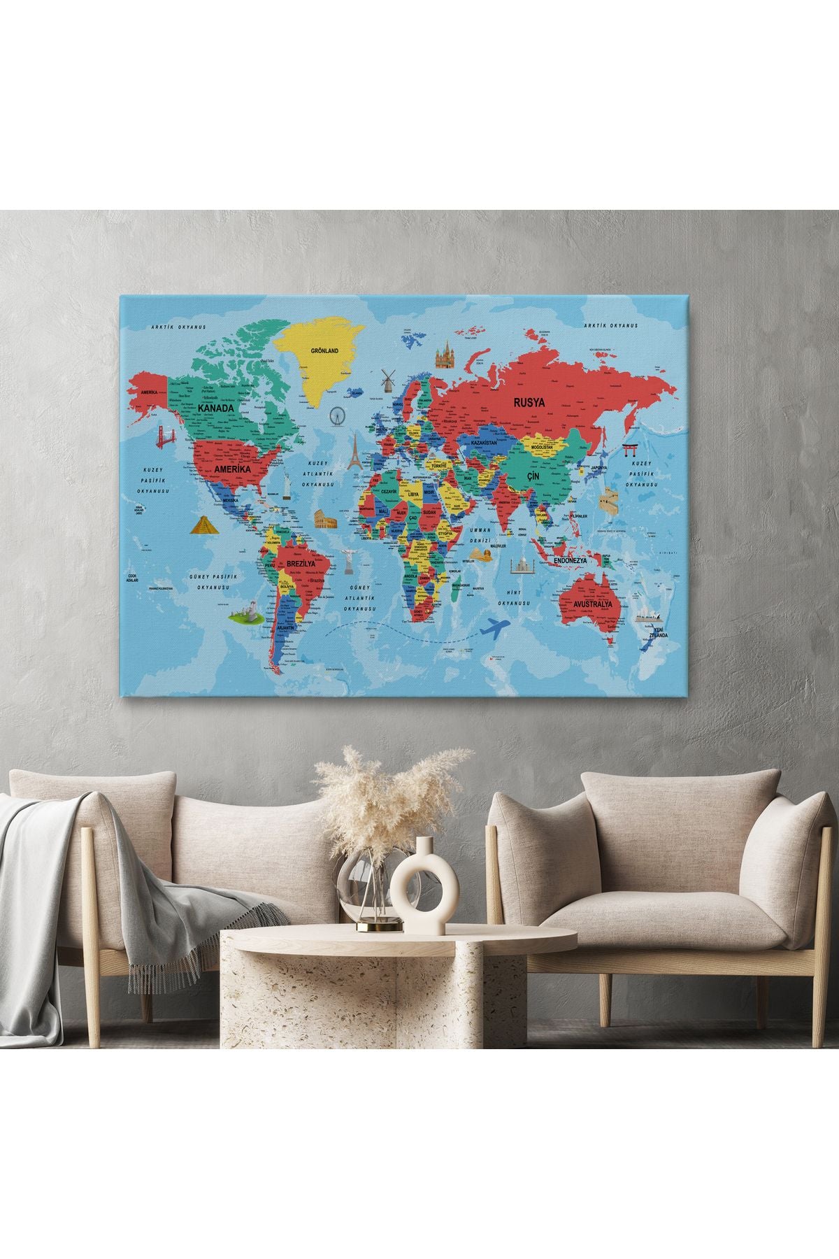 DB HG Türkçe Dünya Haritası Kanvas Tablo Son Derece Detaylı ve Dekoratif-2020
