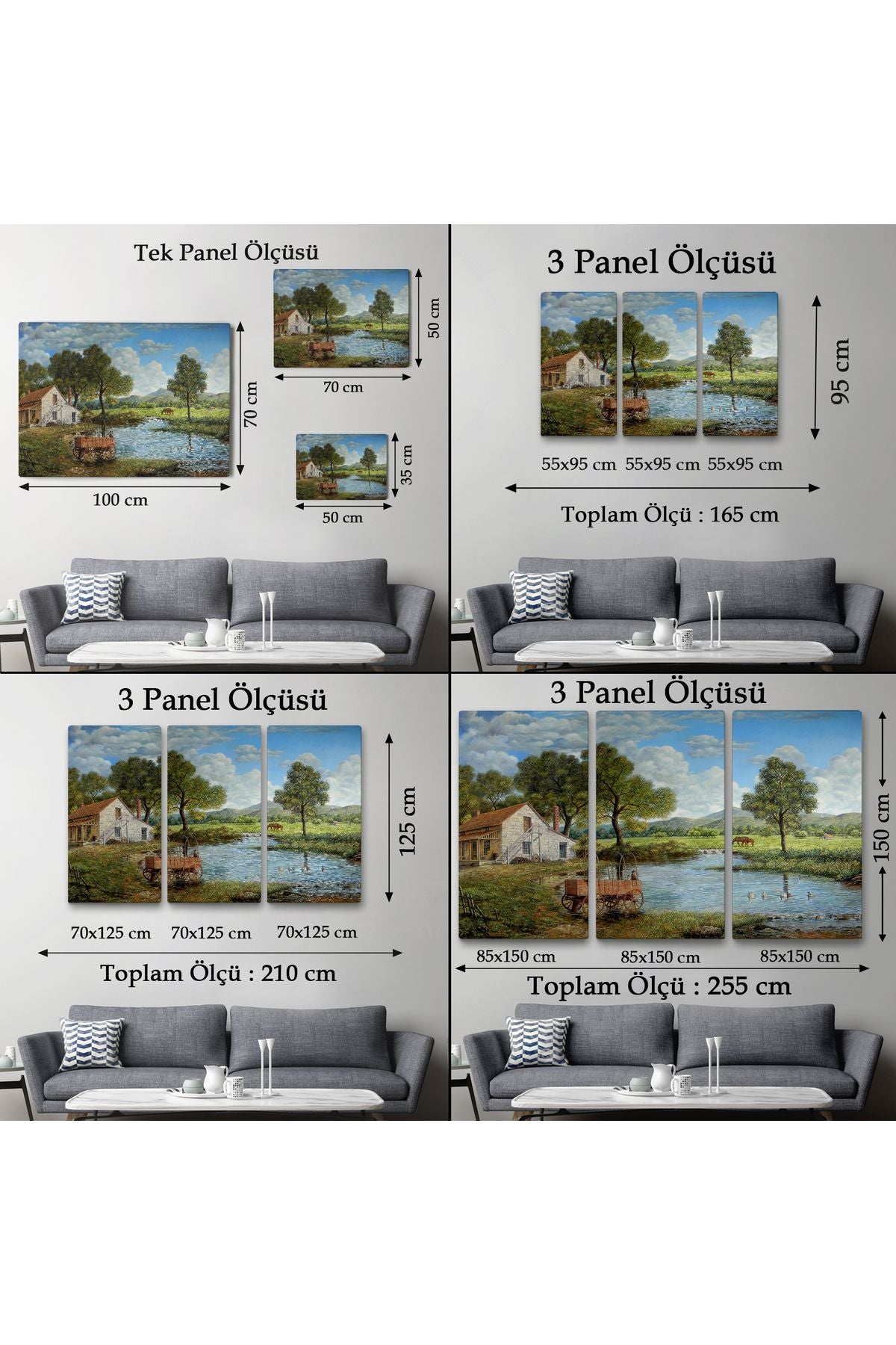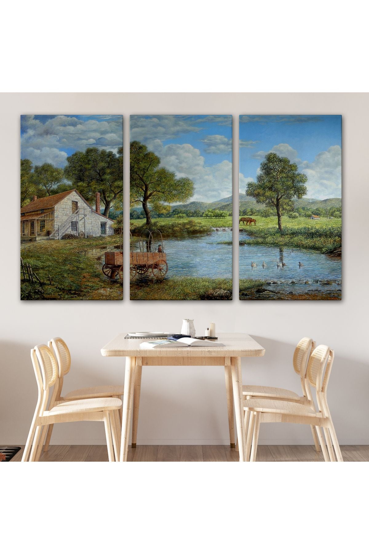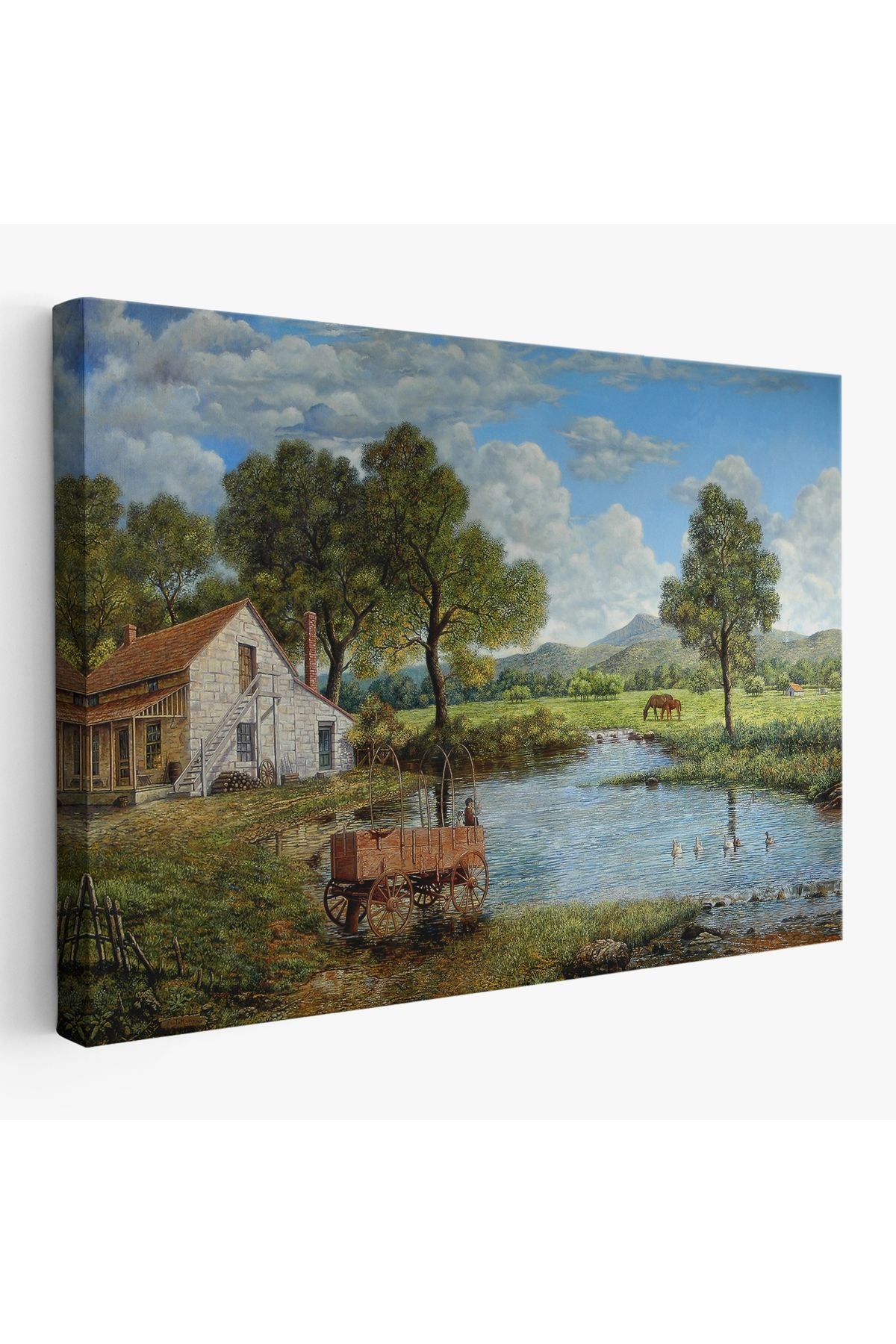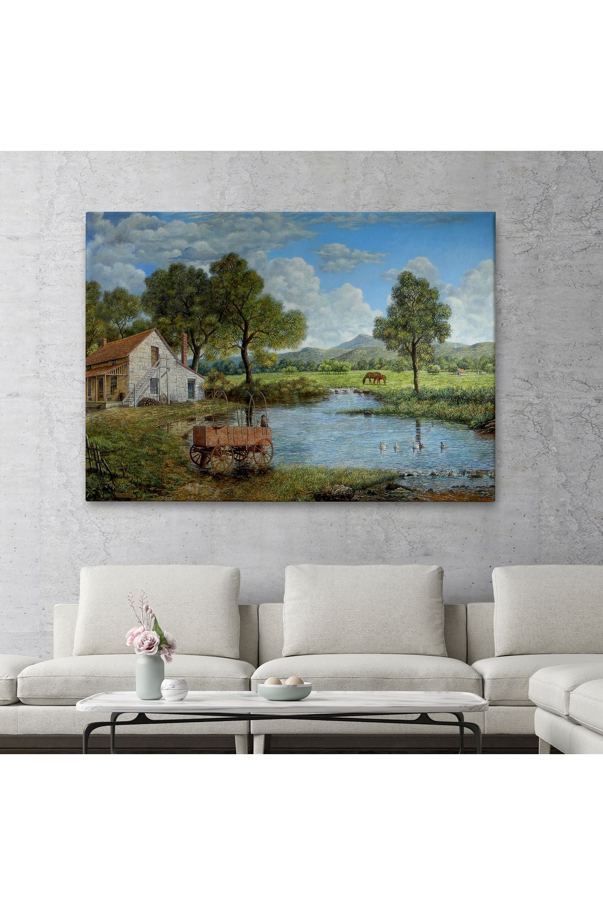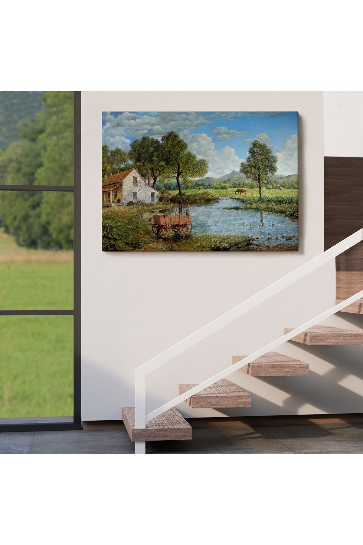 Köy Ve Akarsu Manzaralı Dekoratif Kanvas Duvar Tablosu-3425