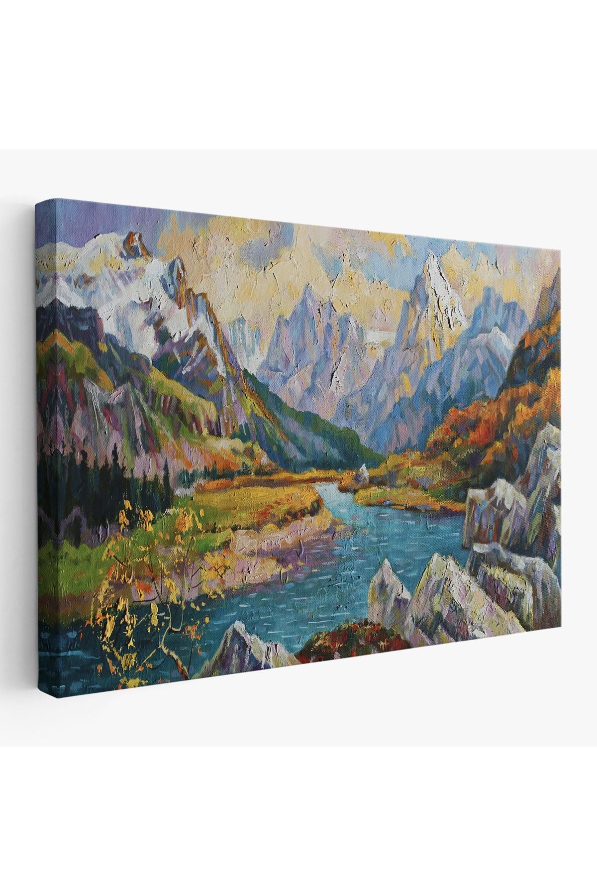 Kafkas Dağları Manzaralı, Doğa, Yağlıboya Görünüm, Dekoratif, Kanvas Tablo, Duvar Tablosu -3603