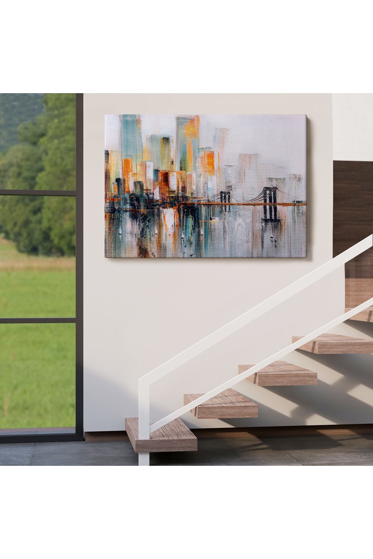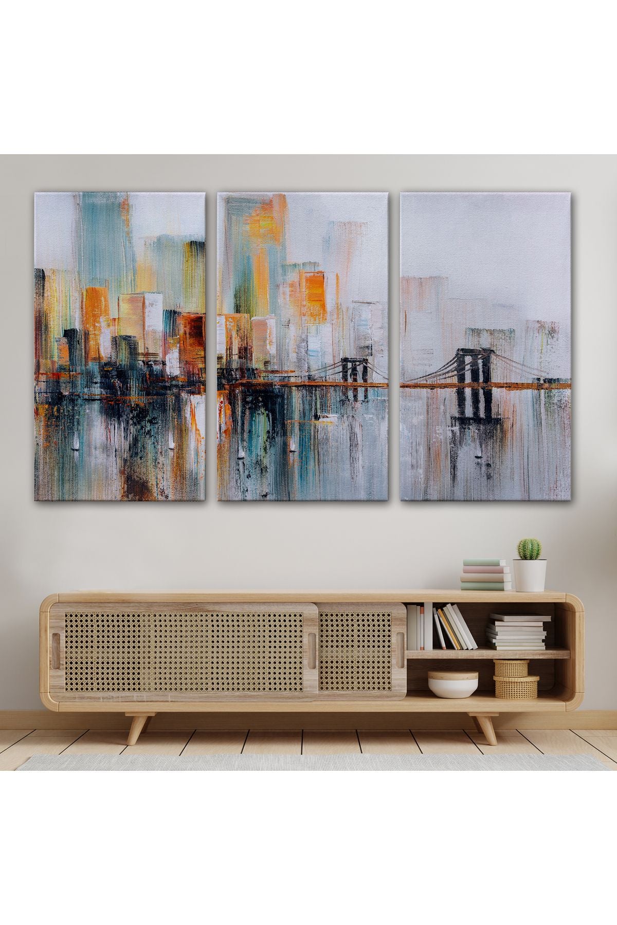 Brooklyn Köprüsü New York Yağlıboya Görünüm Dekoratif Tablo-3744