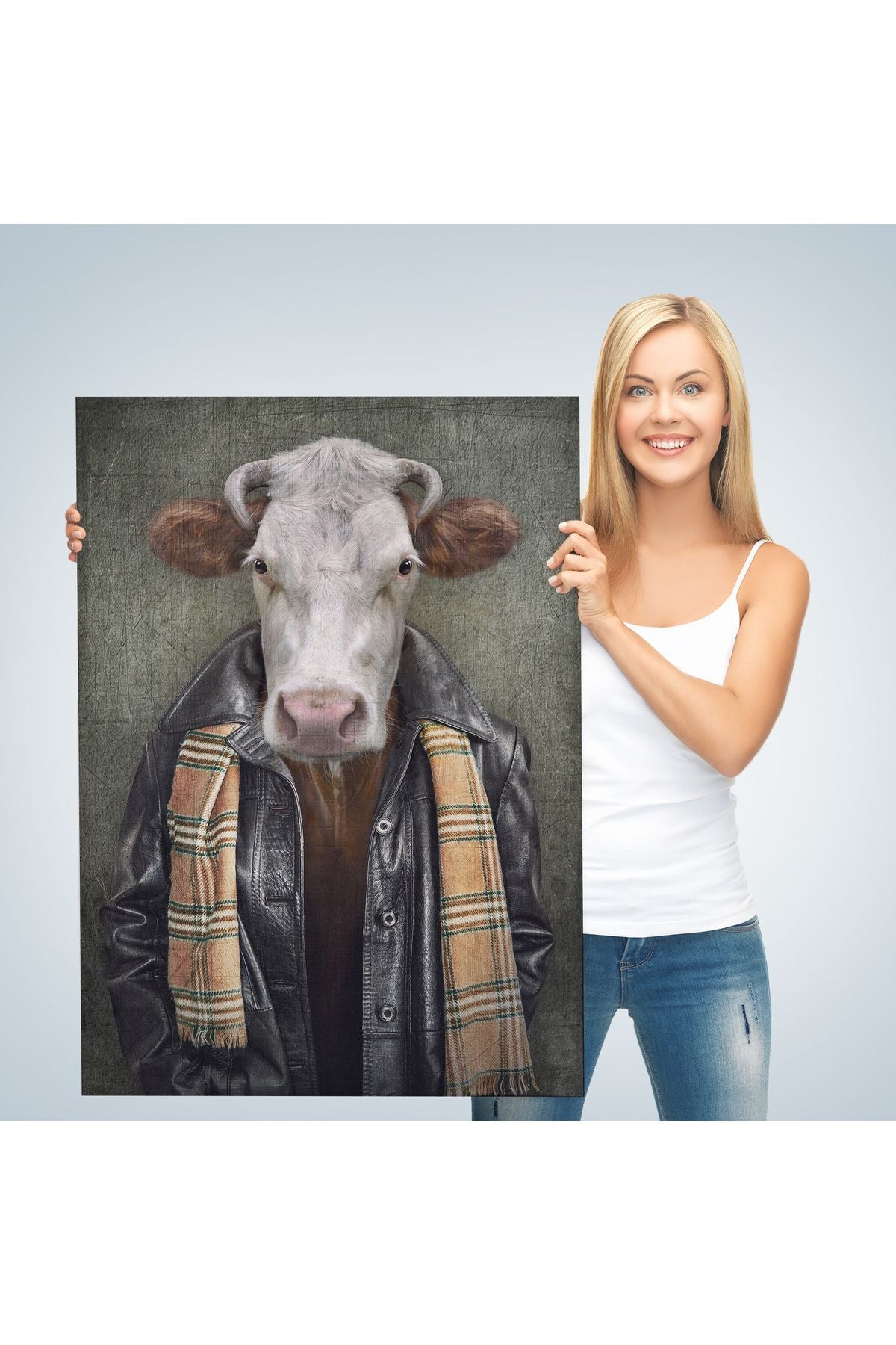 YB HG İnek Kafalı İnsan Kanvas Tablo-4997