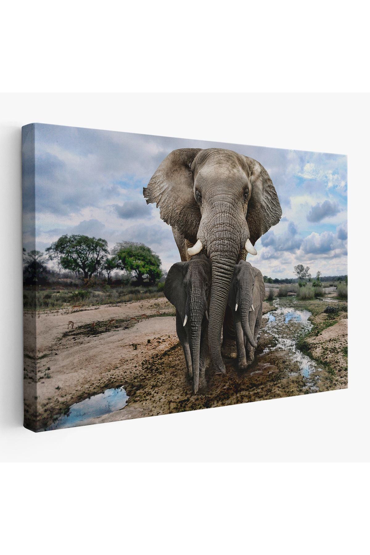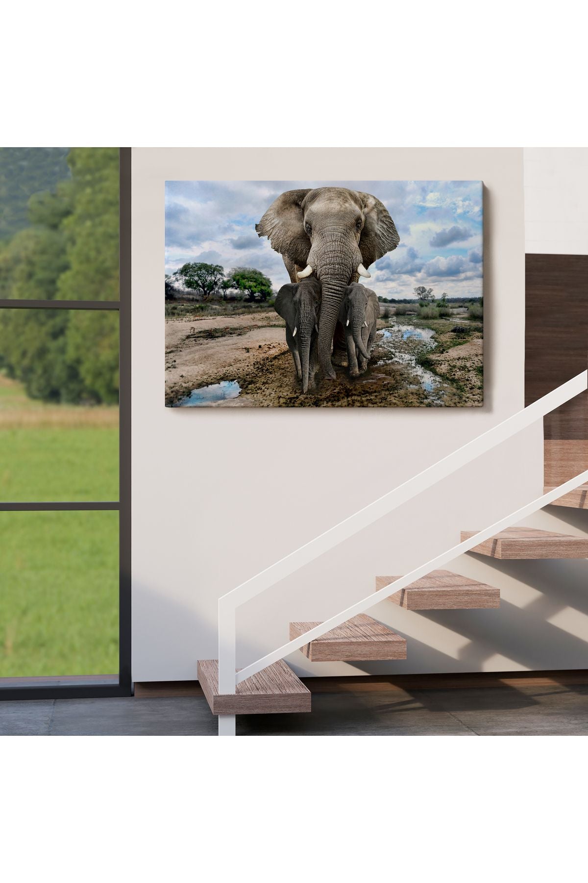 Fil ve Yavruları Dekoratif Kanvas Tablo 1134