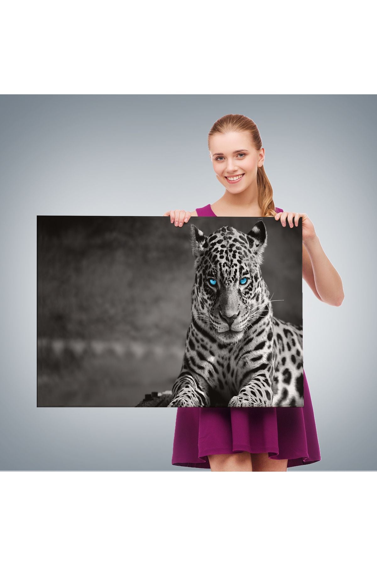 Mavi Gözlü Leopar Dekoratif Kanvas Tablo 1162