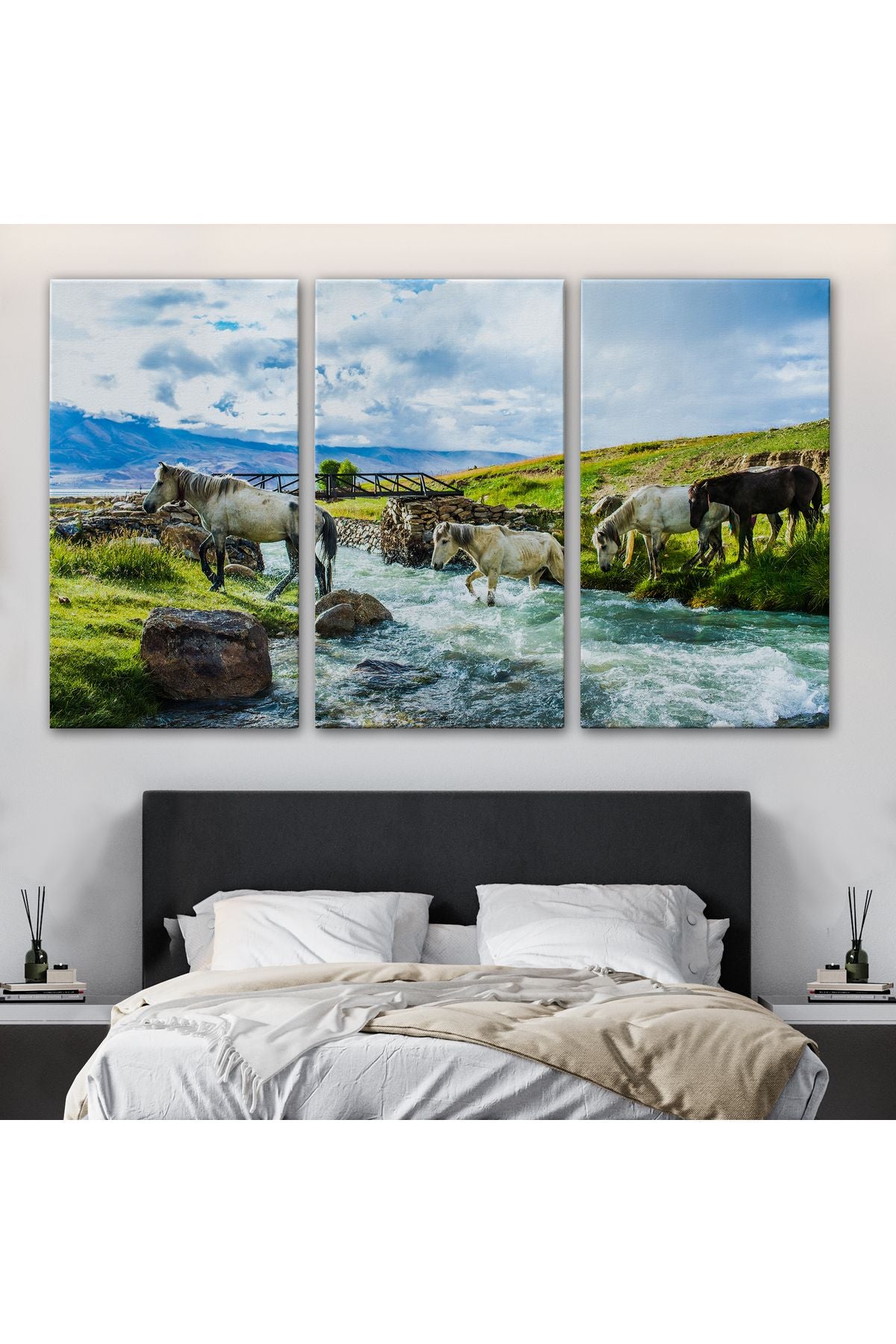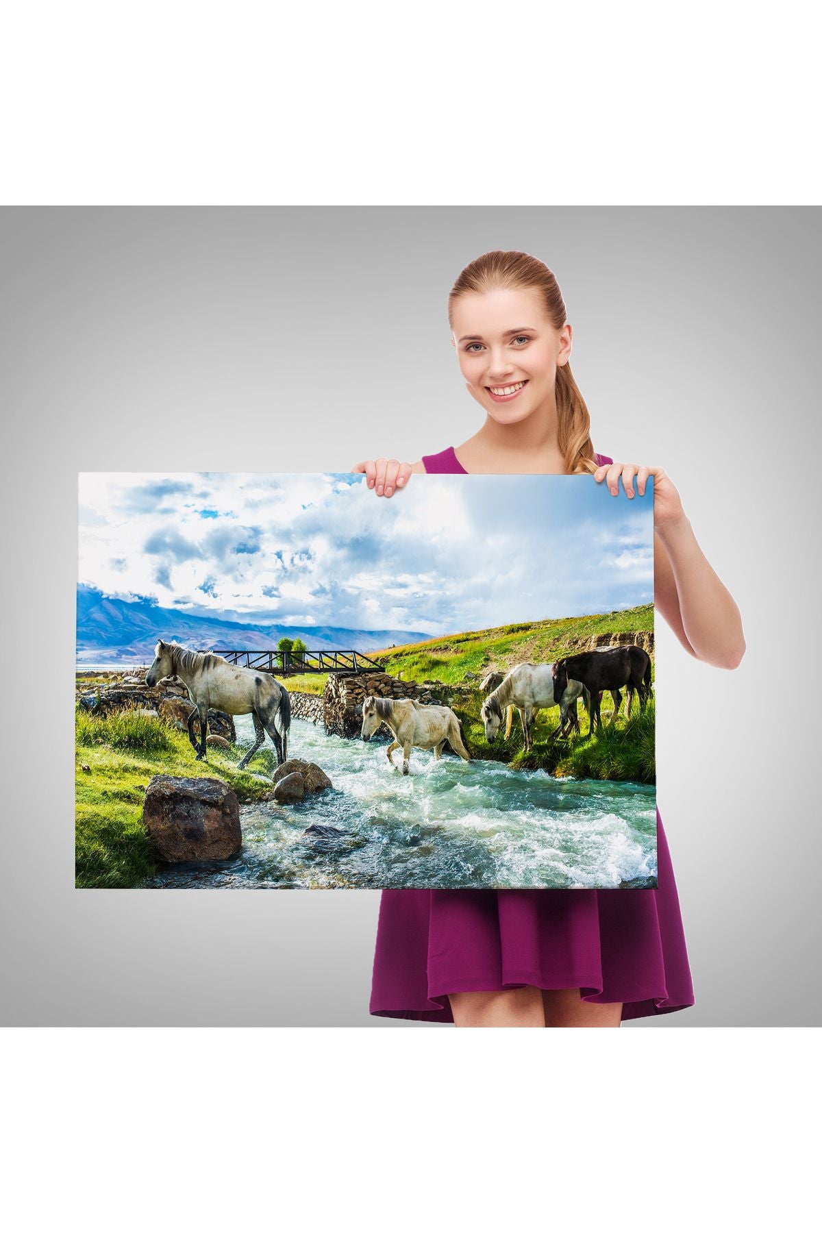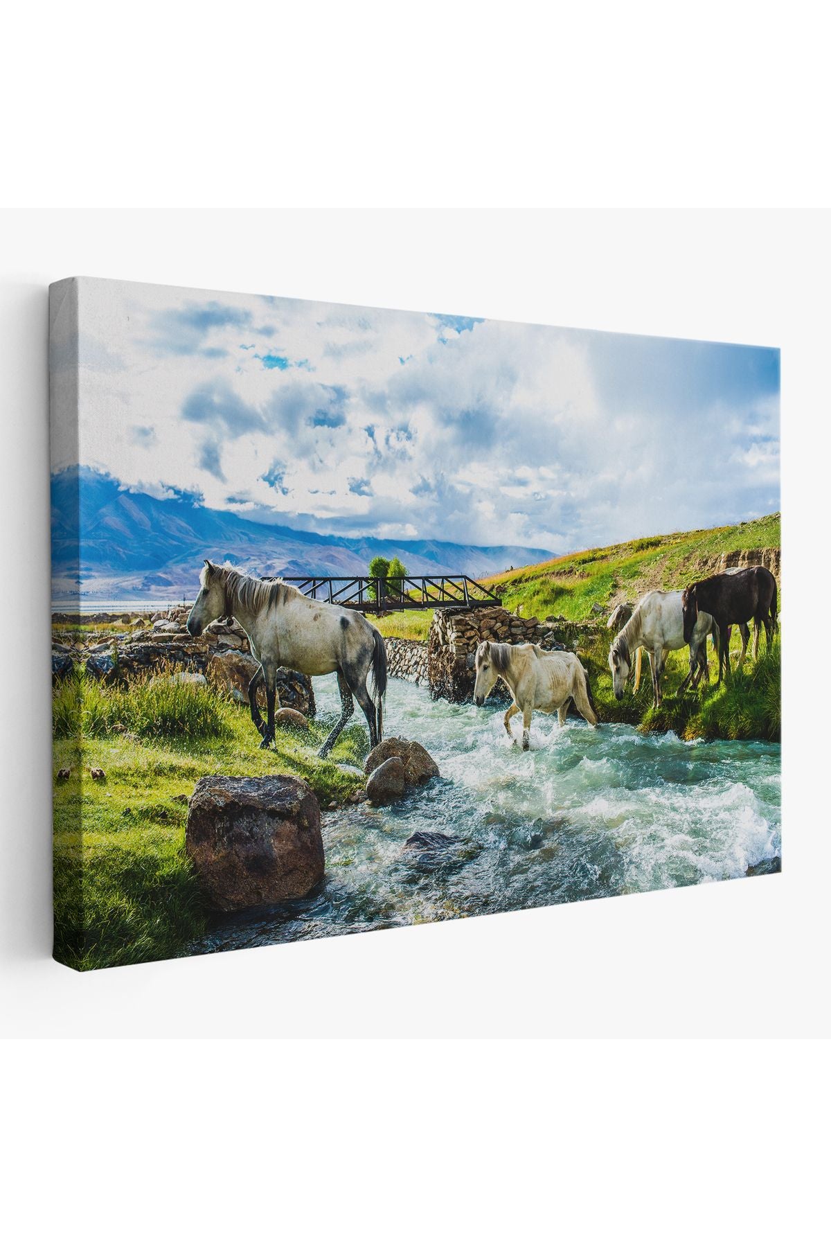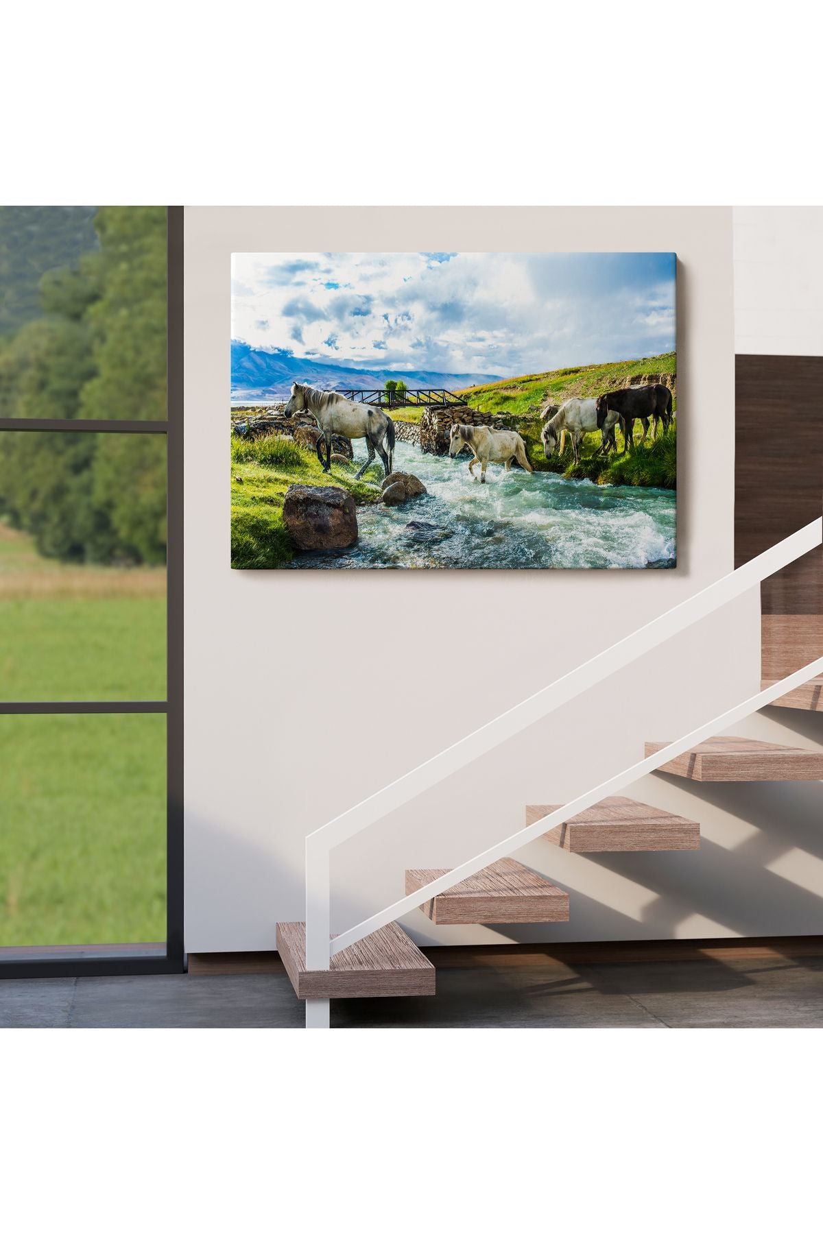 Dereden Geçen Atlar Manzaralı Dekoratif Kanvas Tablo 1169