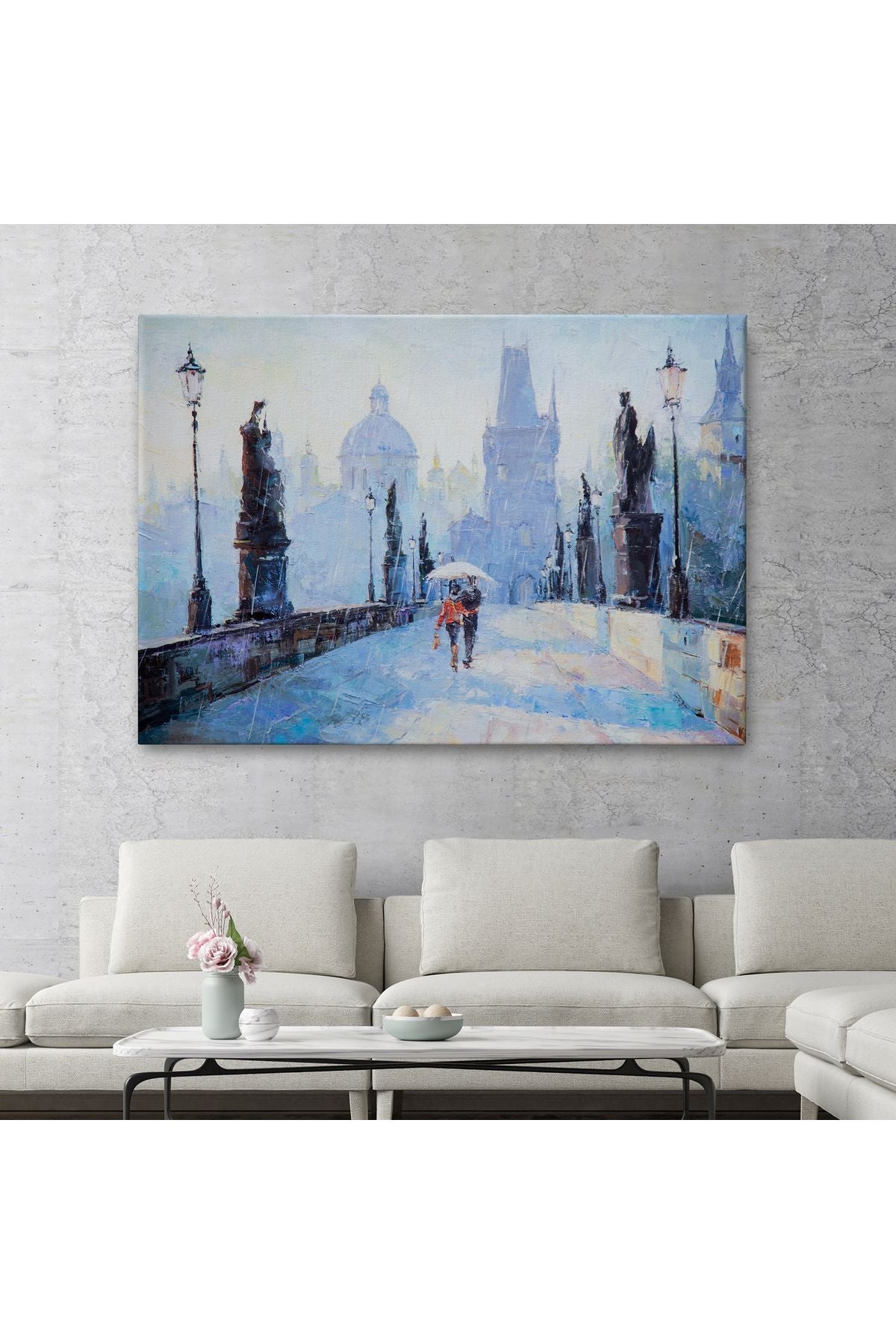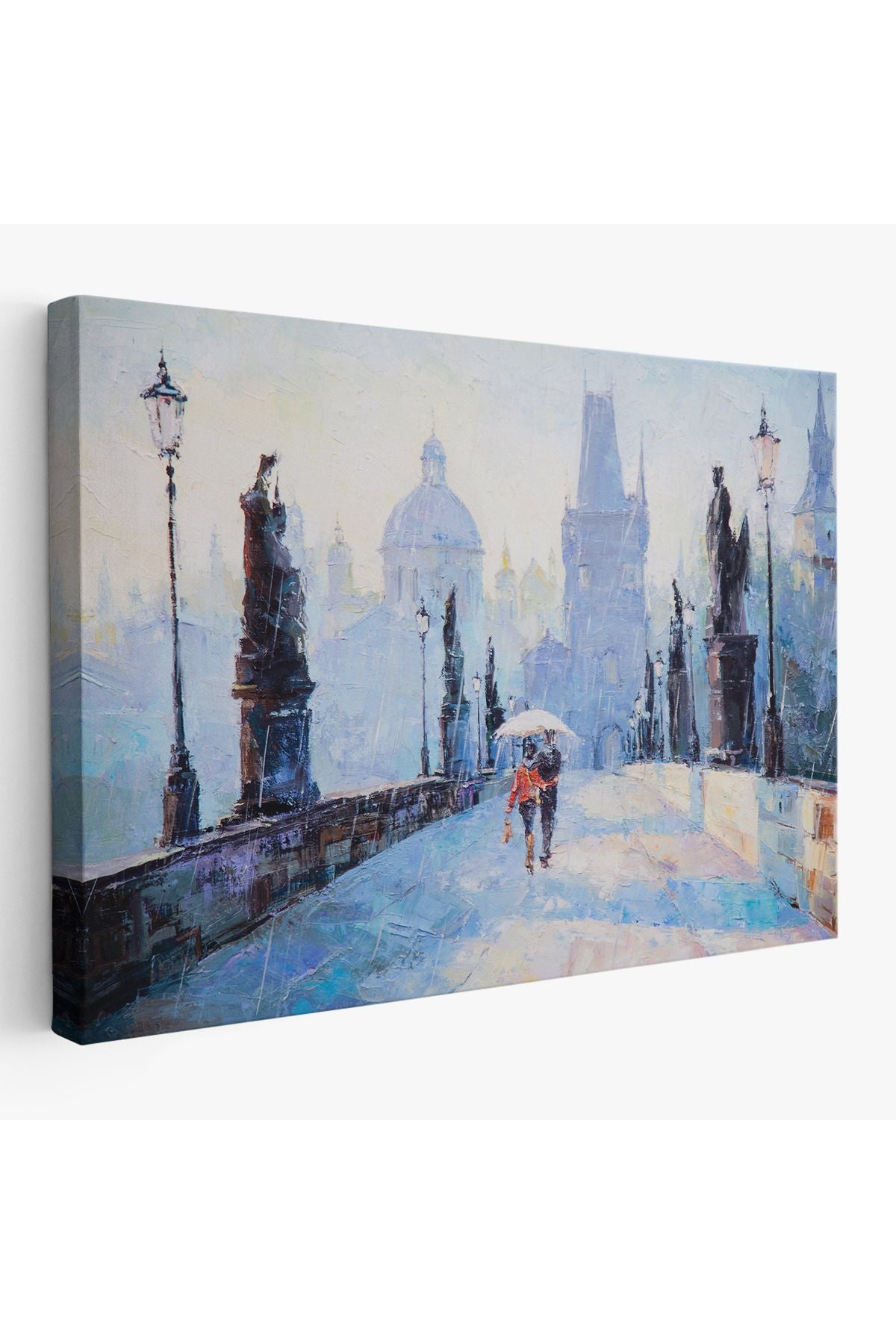 Şemsiye Altında Bir Çift Aşık Temalı Kanvas Duvar Tablosu-1187