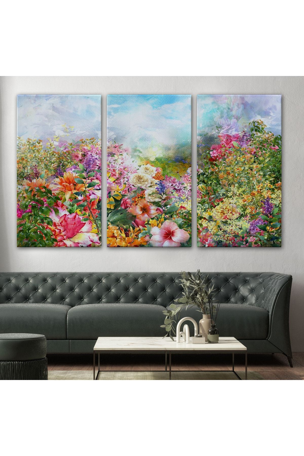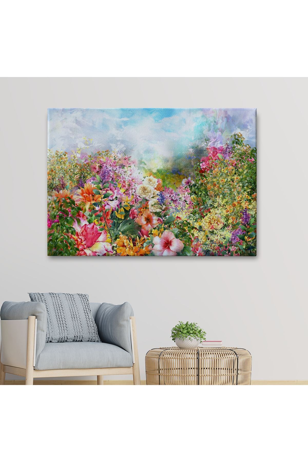 Suluboya Görünümlü Çok Renkli Çiçek Manzaralı Kanvas Tablo-1196