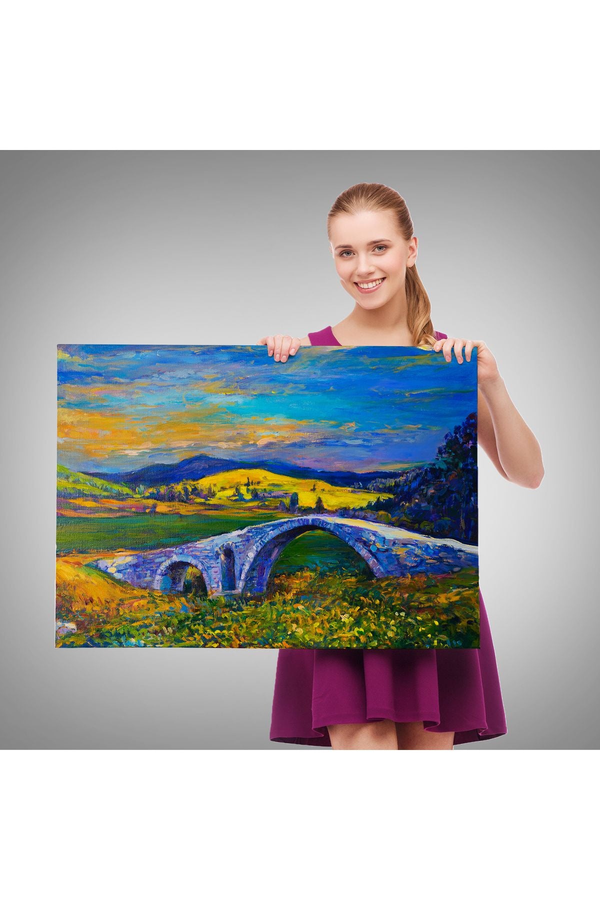 Köy Taşköprüsü Günbatımı Manzarası Duvar Tablosu-1202