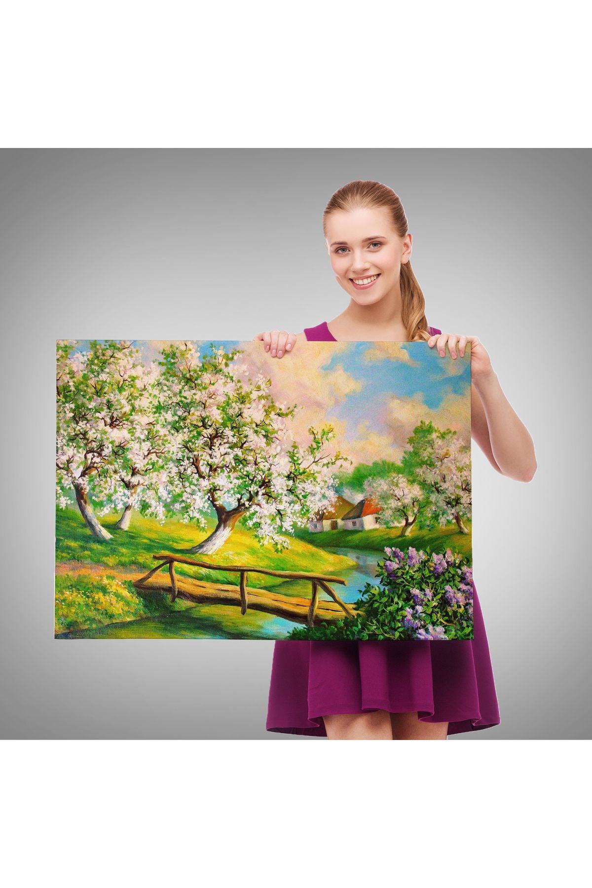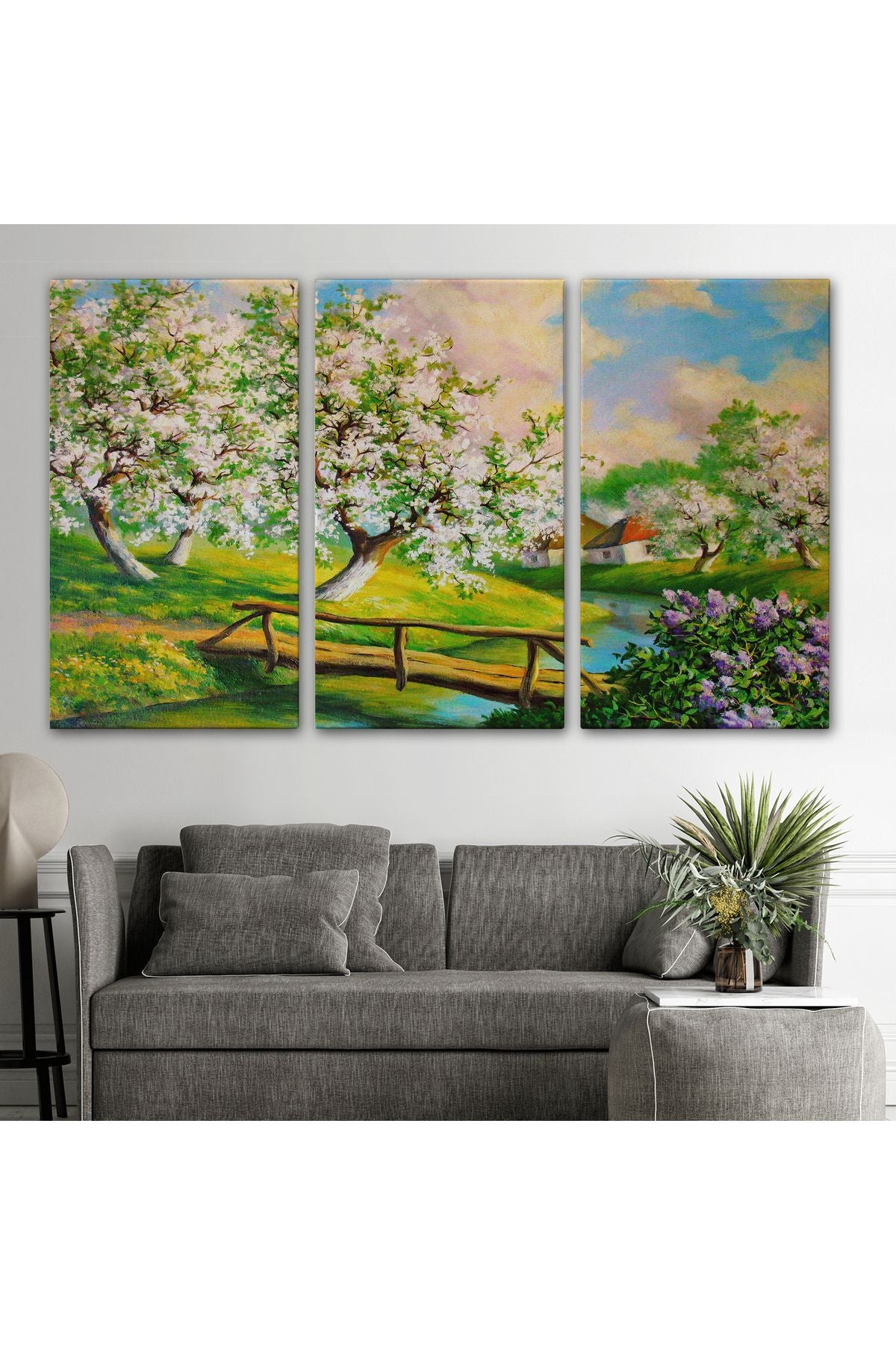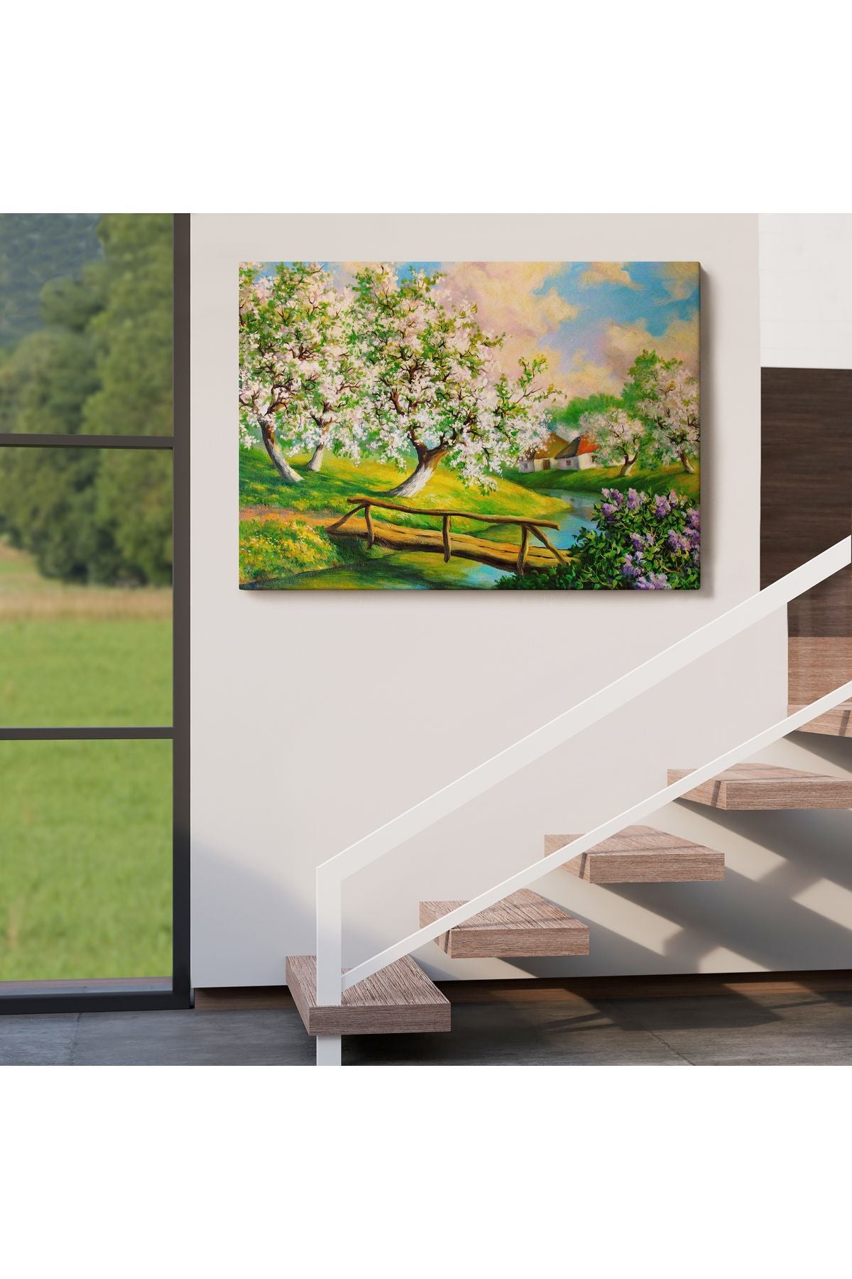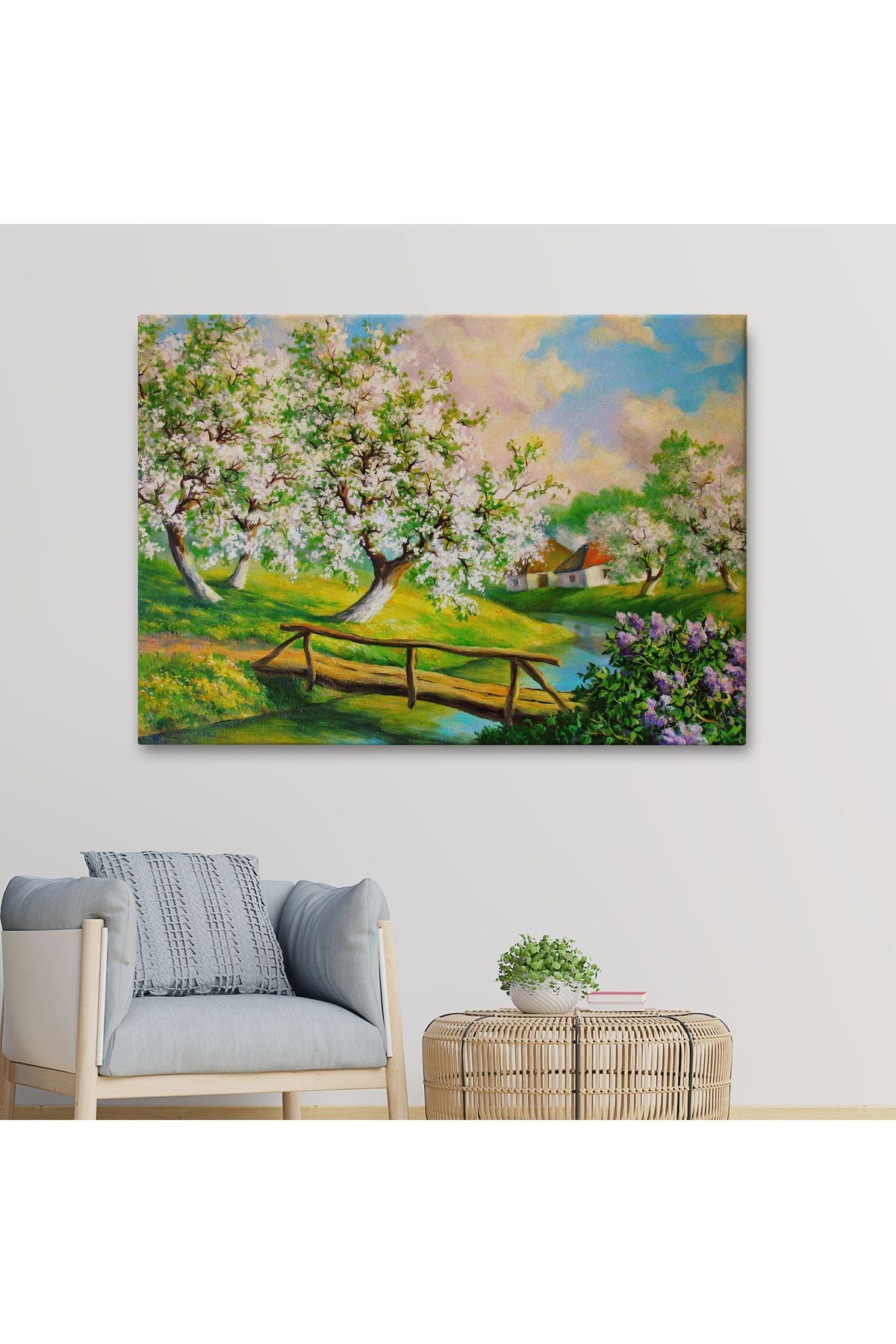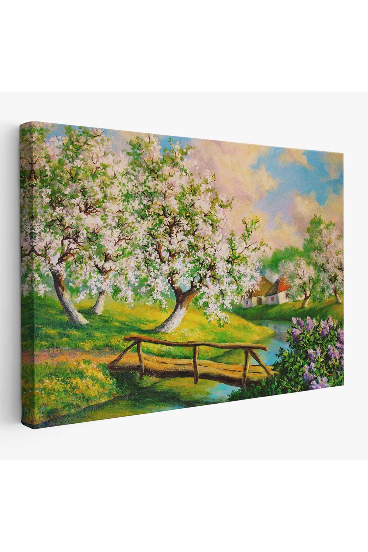 Köy içinden Akan Akarsu Bahar Manzarası Duvar Tablosu-1204
