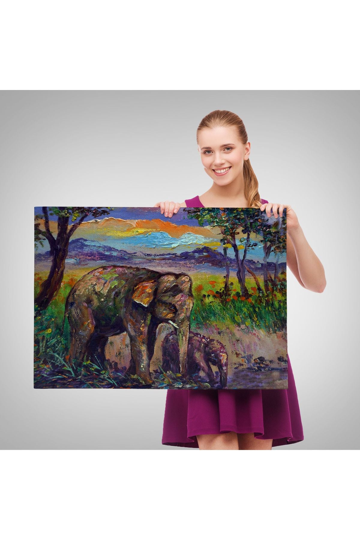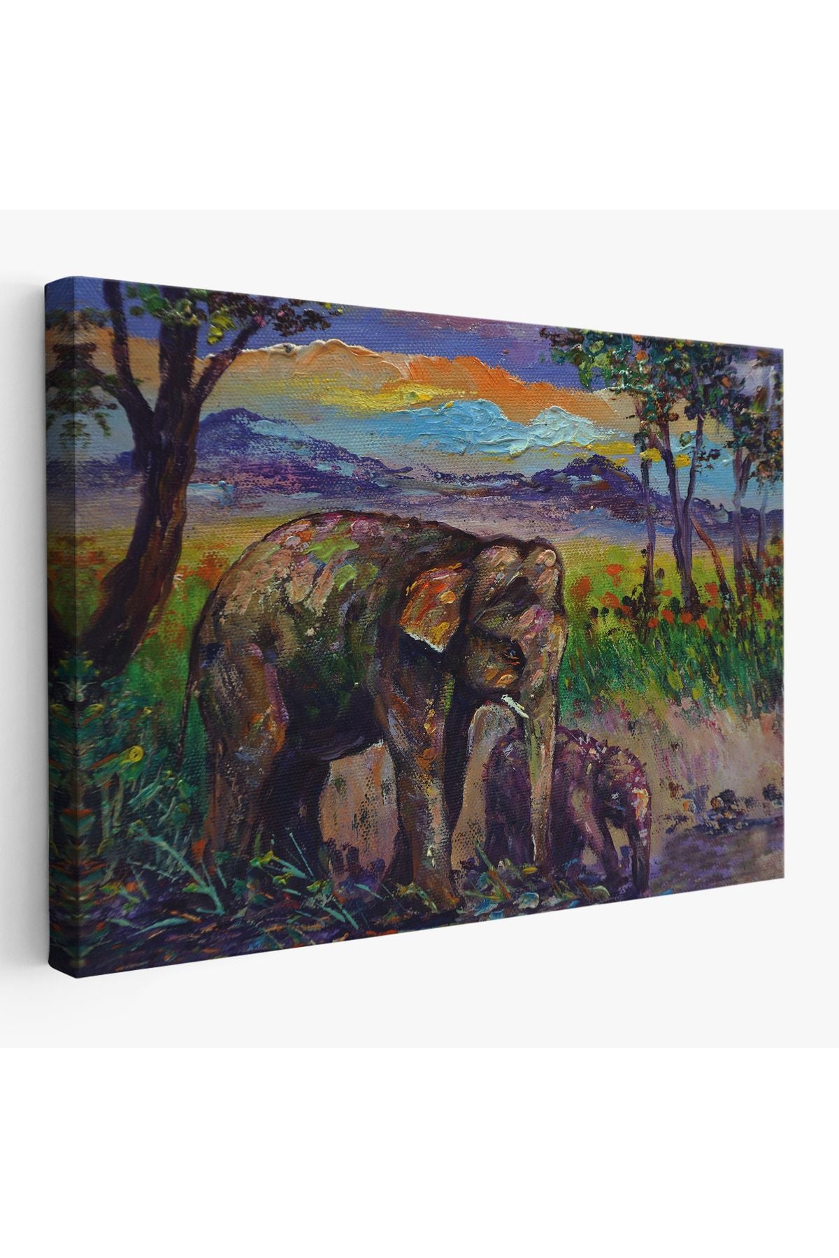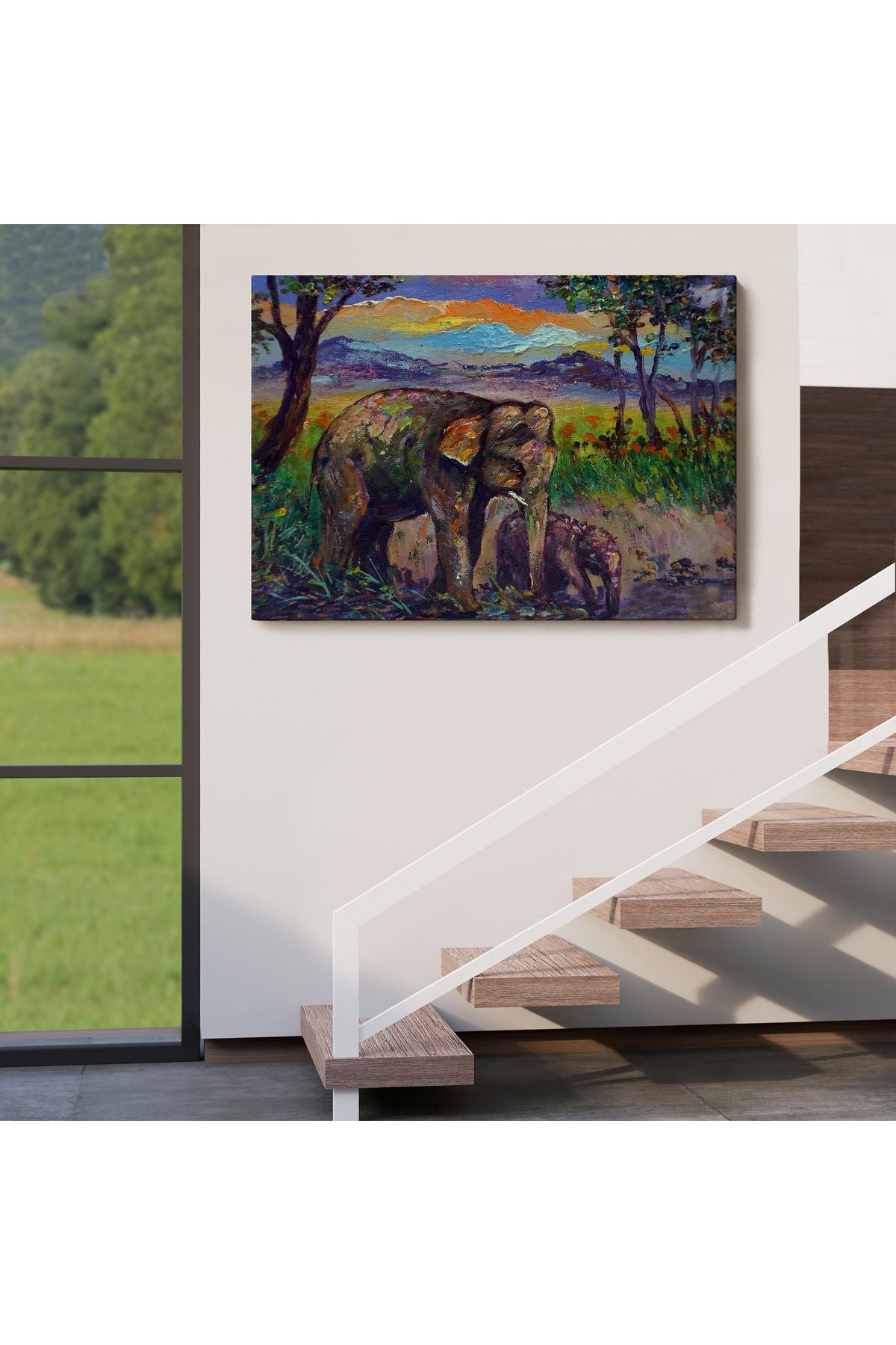 Ormandaki Yavru Fil ve Anne Fil Tablosu-1242
