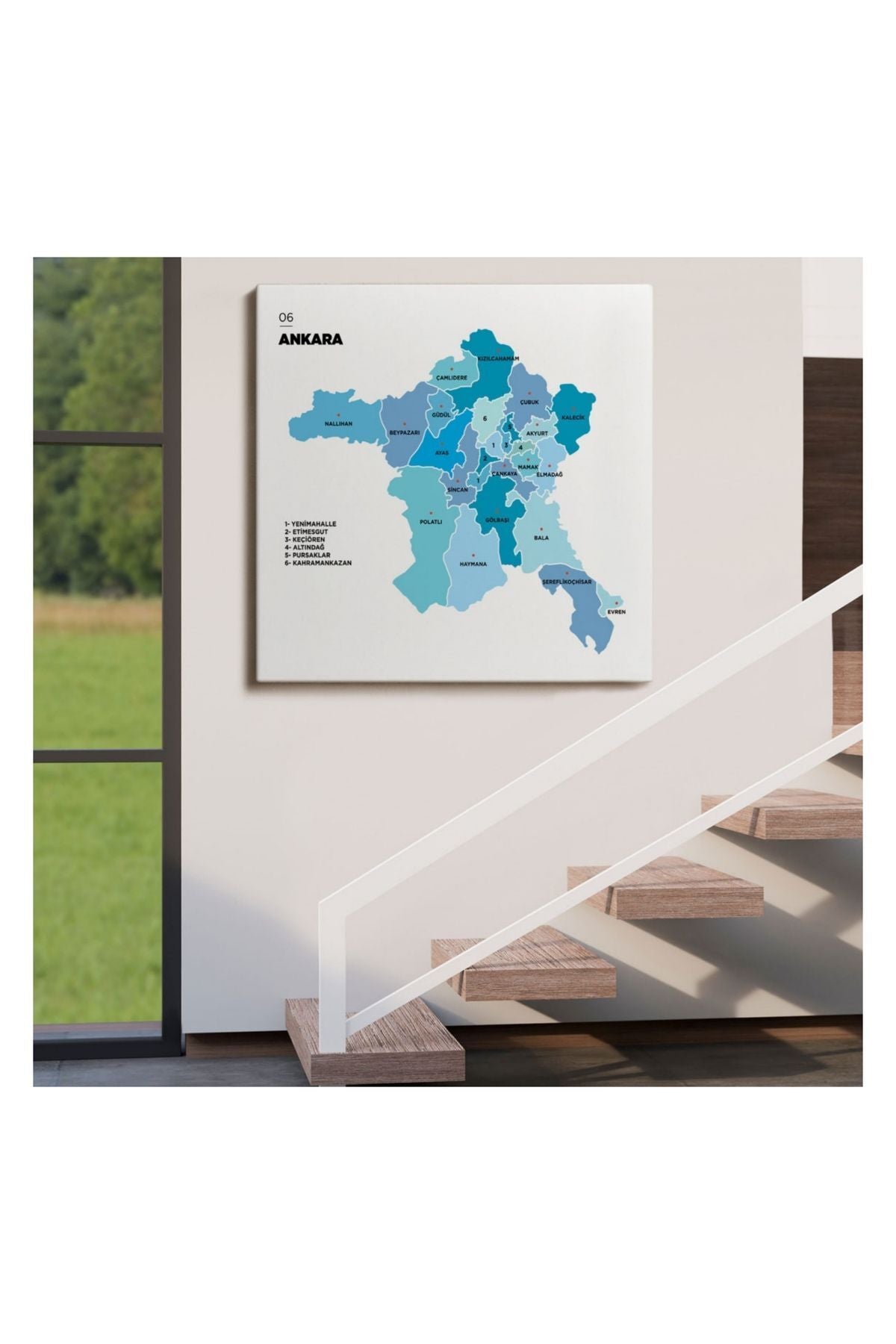 Kanvas Tablo, Duvar Dekoru, İl ve İlçeler Haritası Ankara, Modern 1264 BUNGKNV