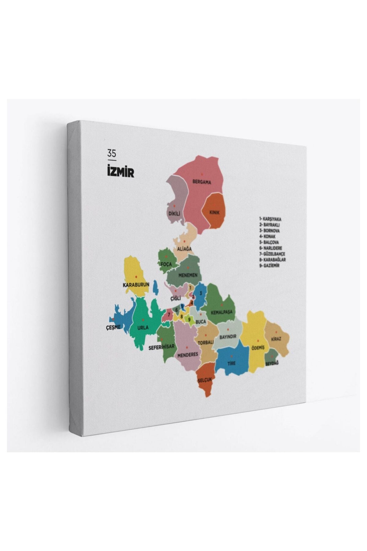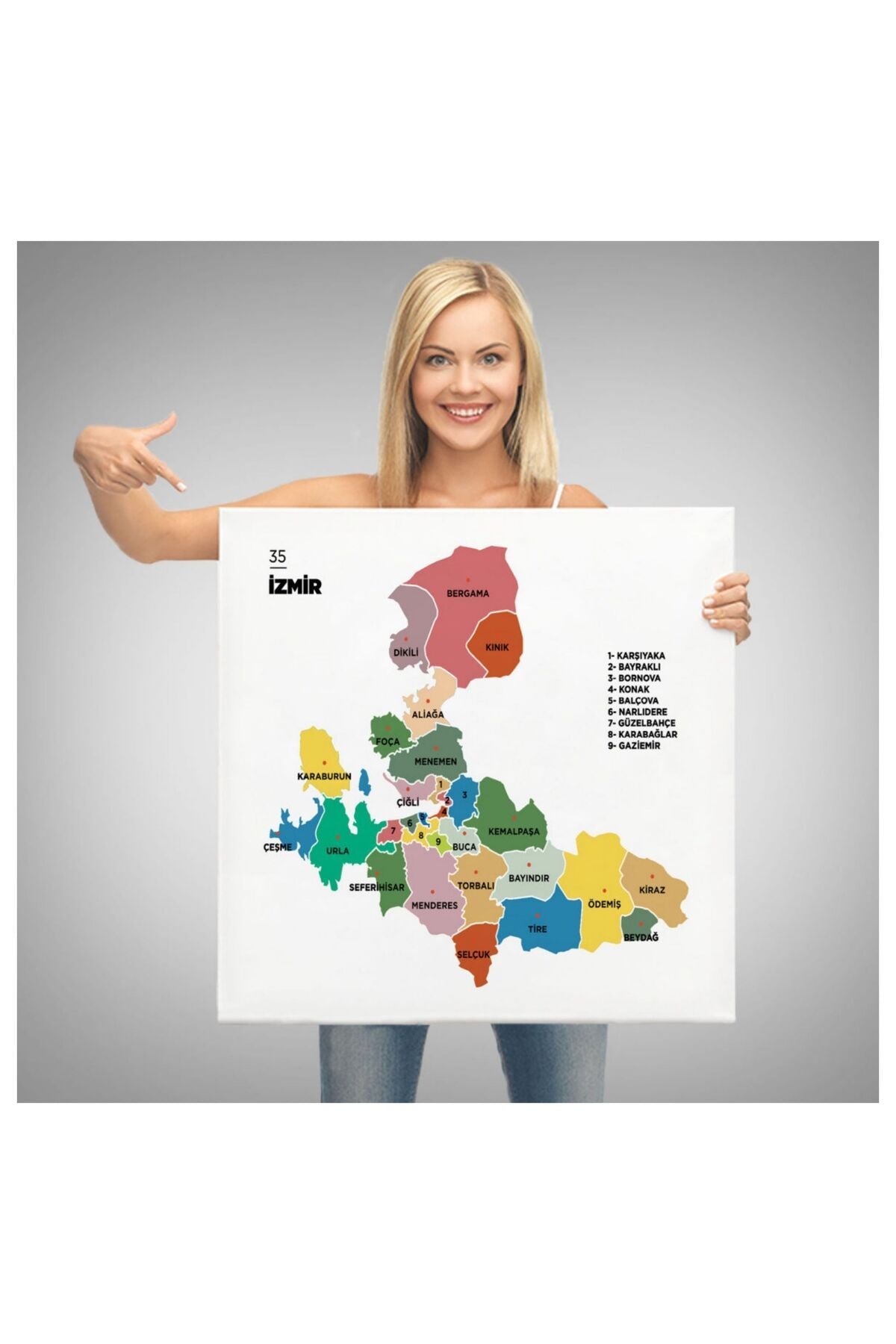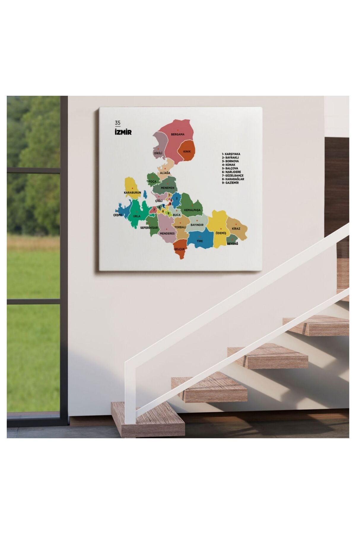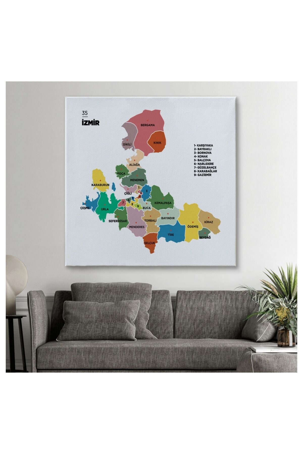 Kanvas, Duvar Tablosu, Dekoratif, İl ve İlçeler Haritası İzmir, Modern 1368 EGKNV