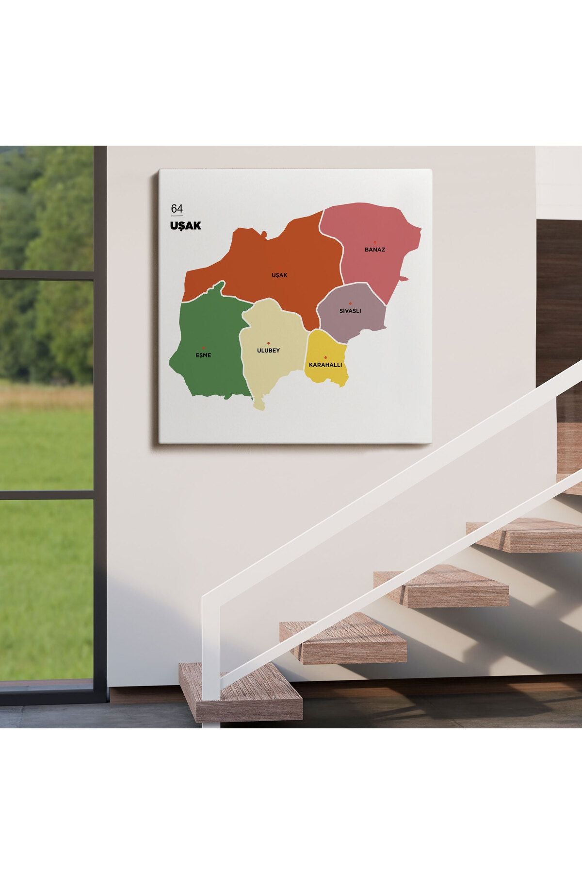 Uşak İli ve İlçeler Haritası Dekoratif Kanvas Tablo 1476