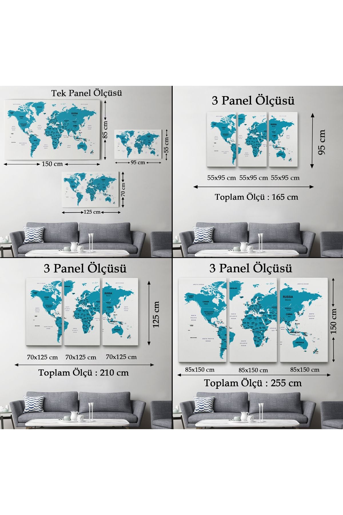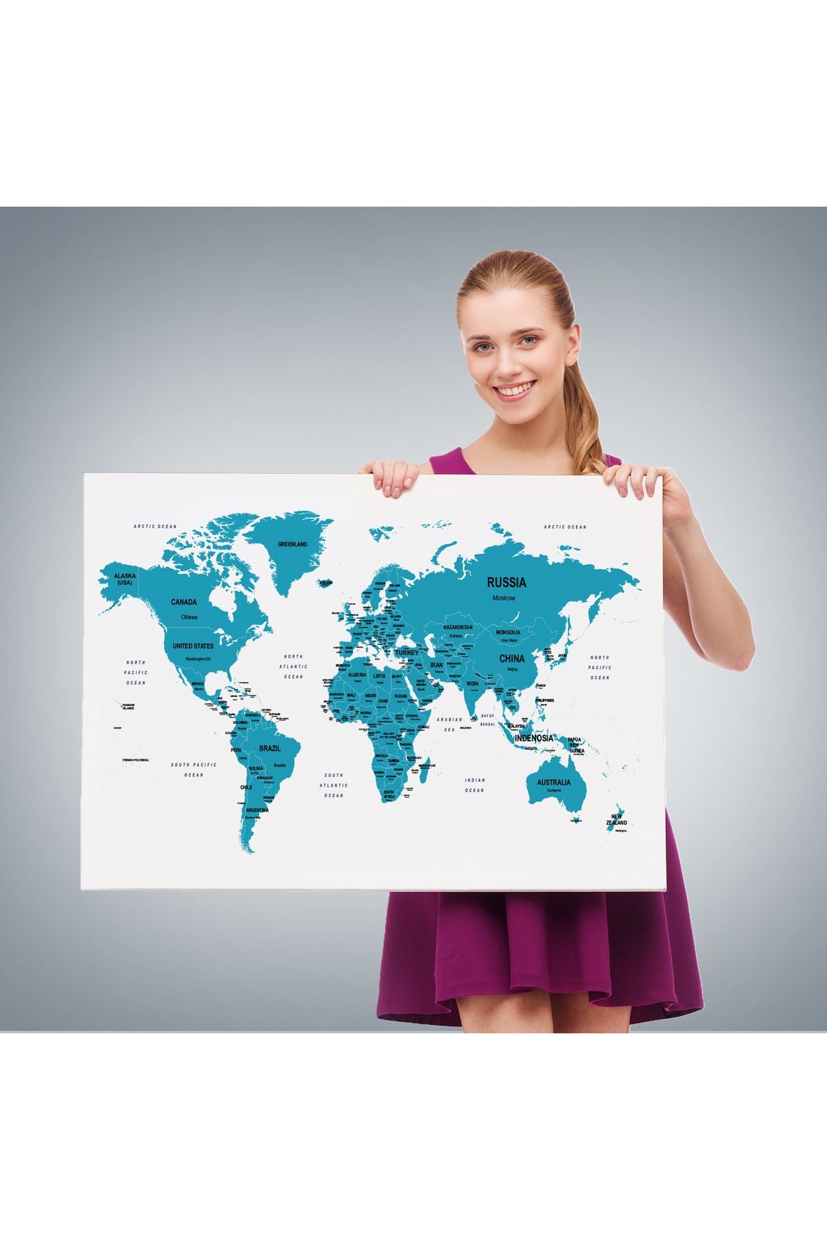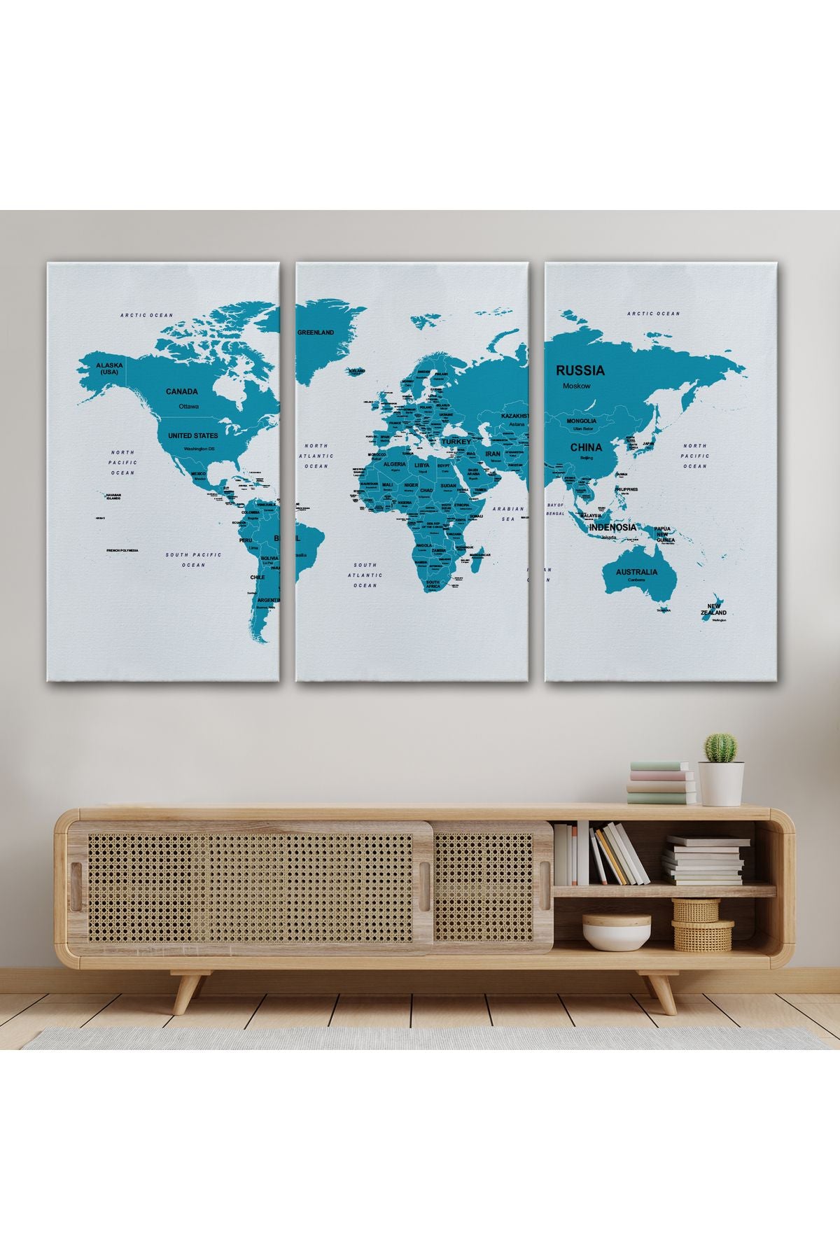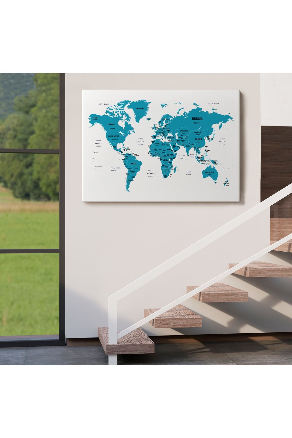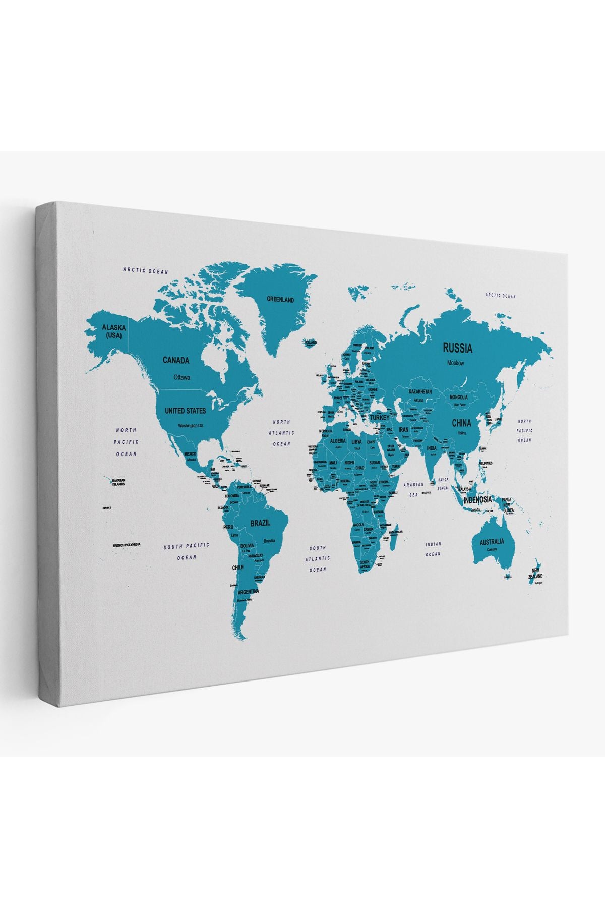 Dünya Haritası Dekoratif Kanvas Tablo Ülke ve Başkentli 1503
