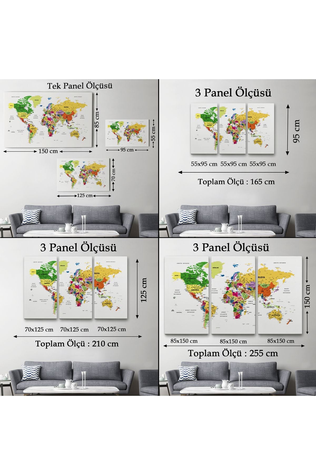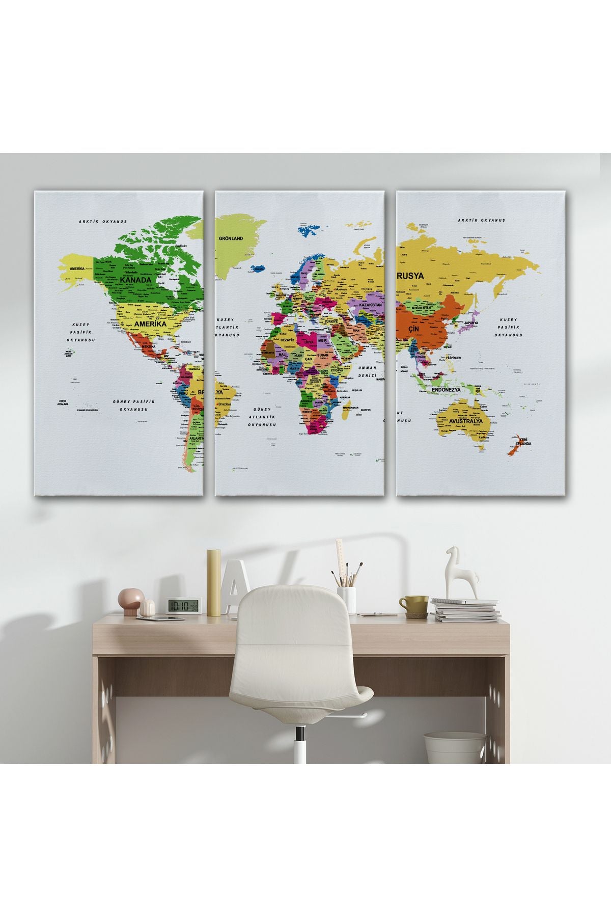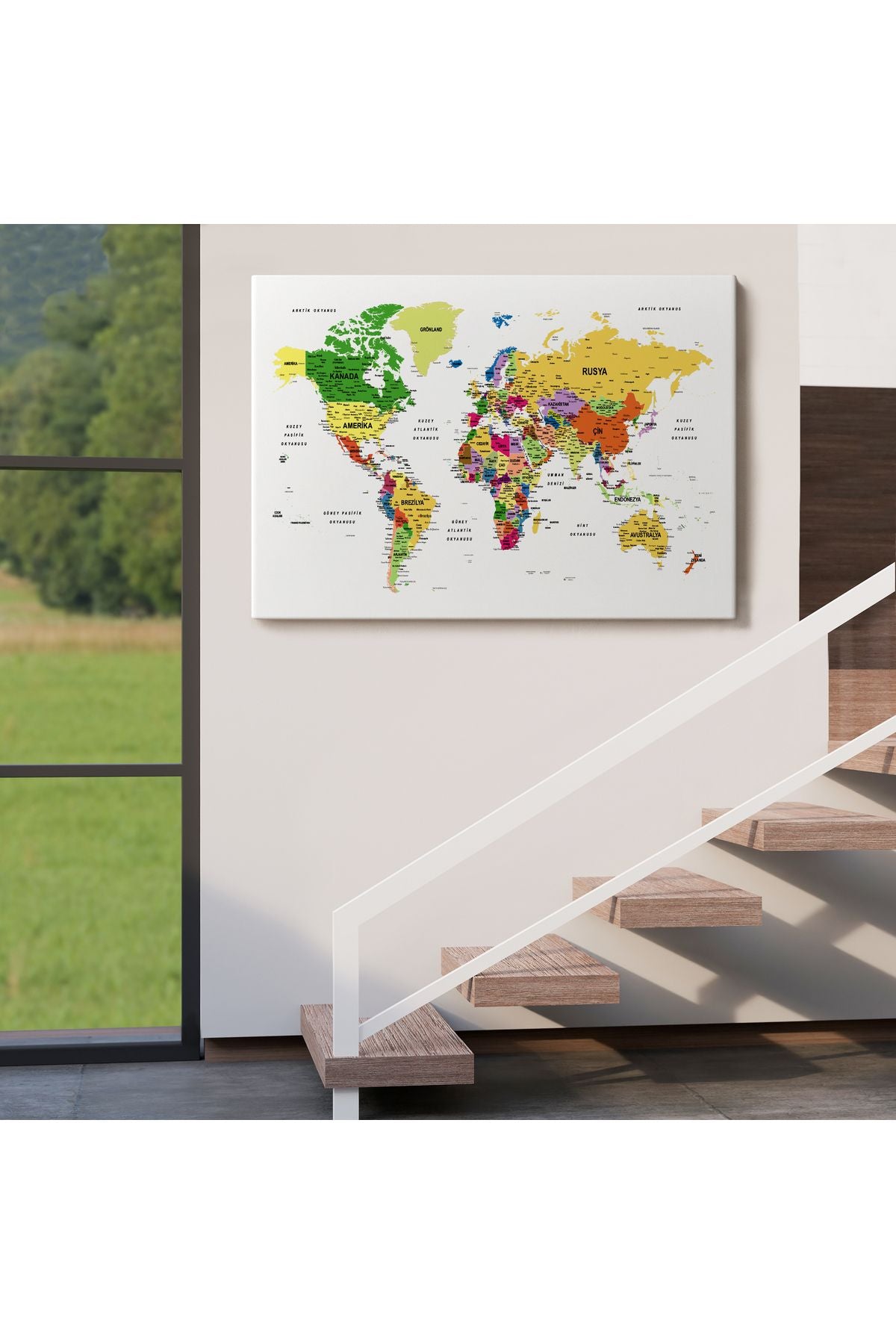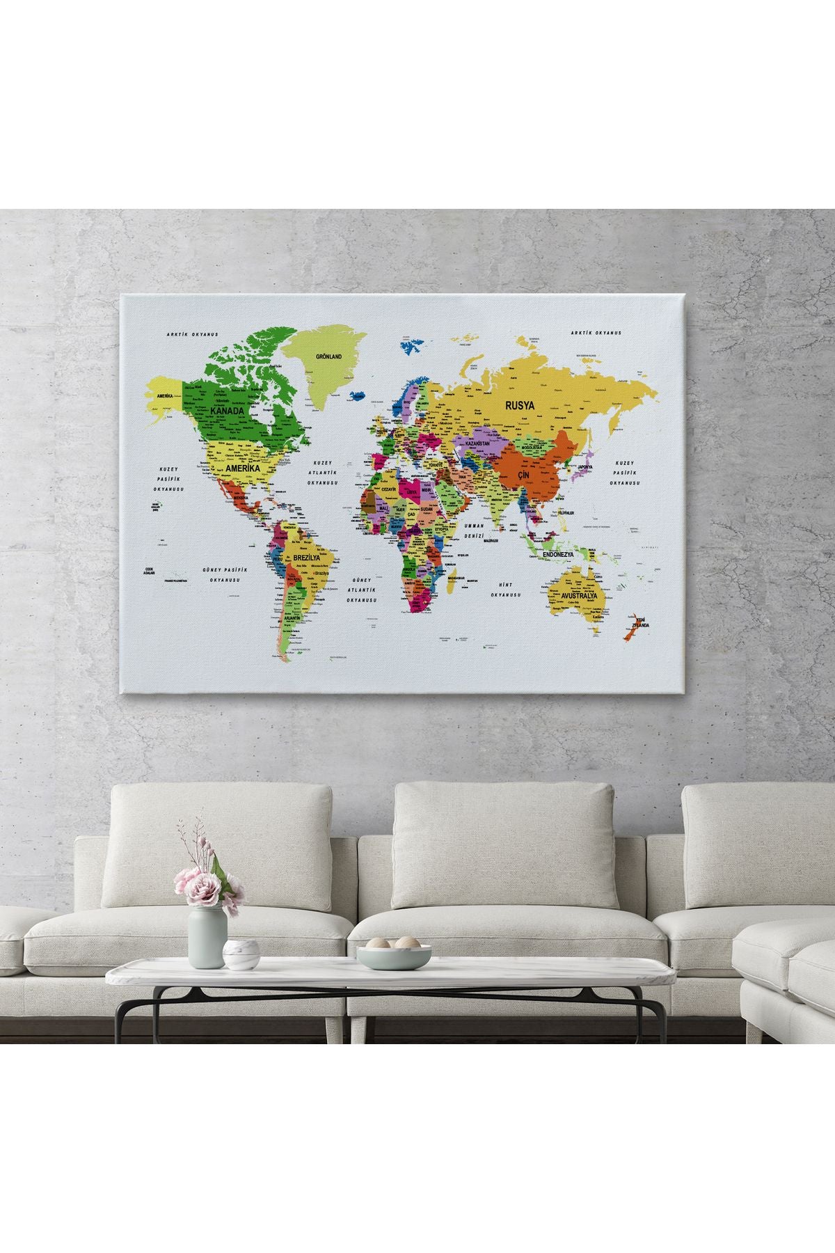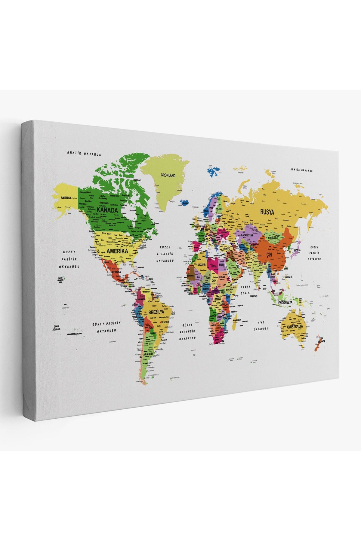 Türkçe Dünya Haritası Dekoratif Kanvas Tablo Son Derece Detaylı 1614