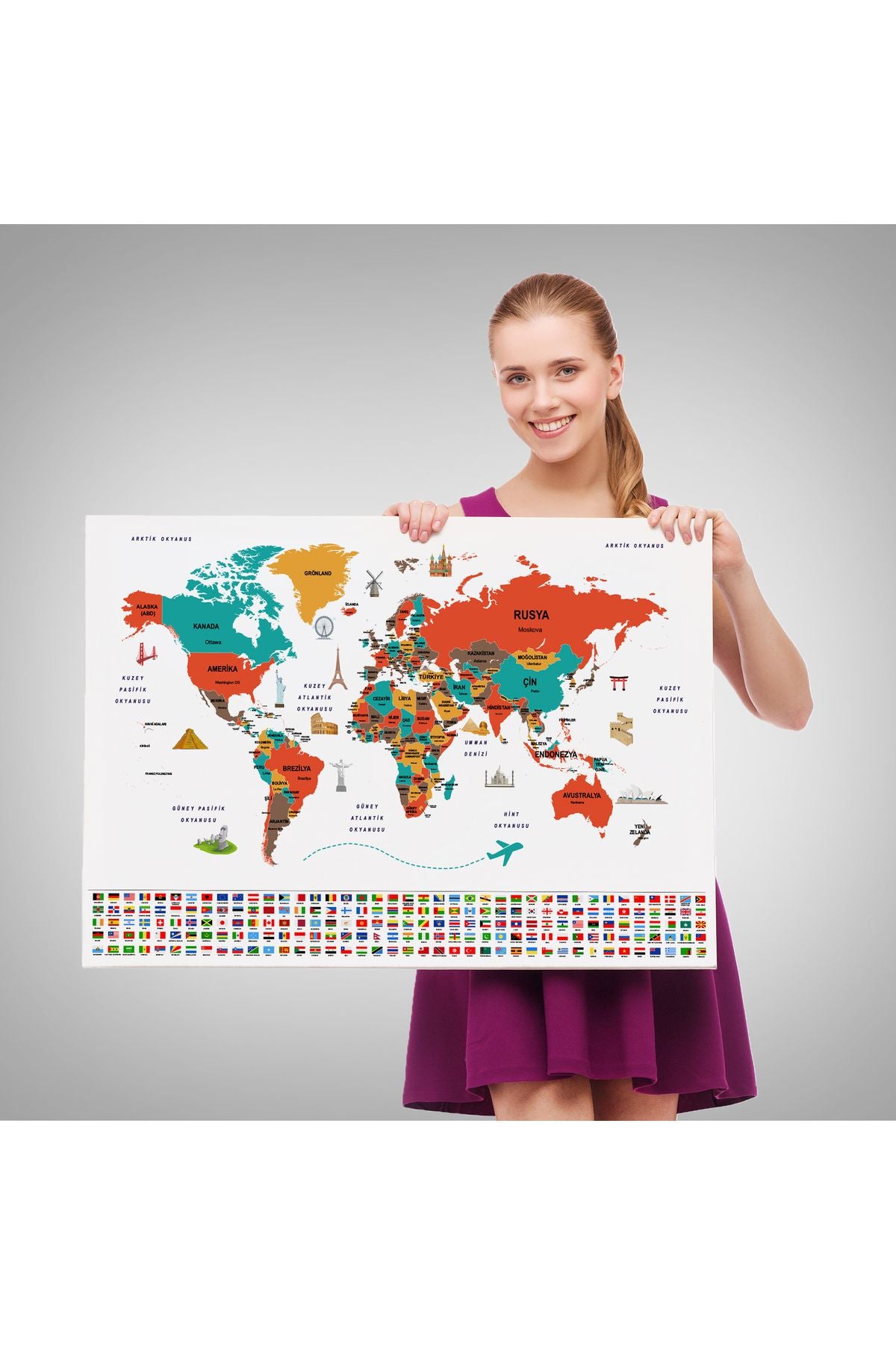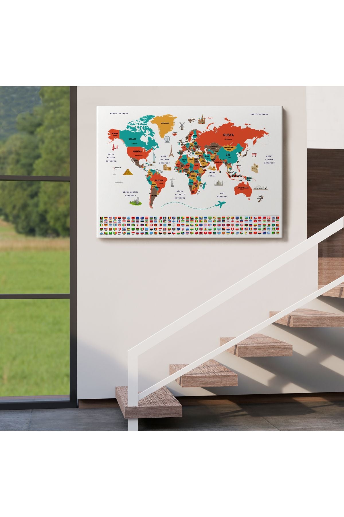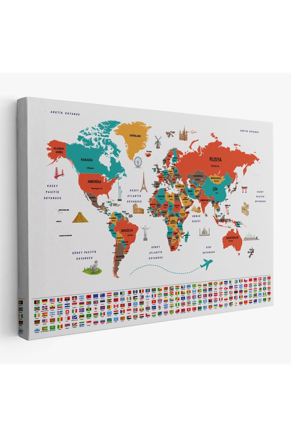 YB HG Türkçe Dünya Haritası Ülke Bayrak ve Başkentli Kanvas Tablo 1922