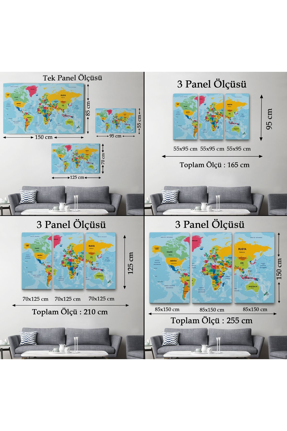 Türkçe Dünya Haritası Ülke Başkentli ve Okyanuslu Dekoratif Kanvas Tablo 2242