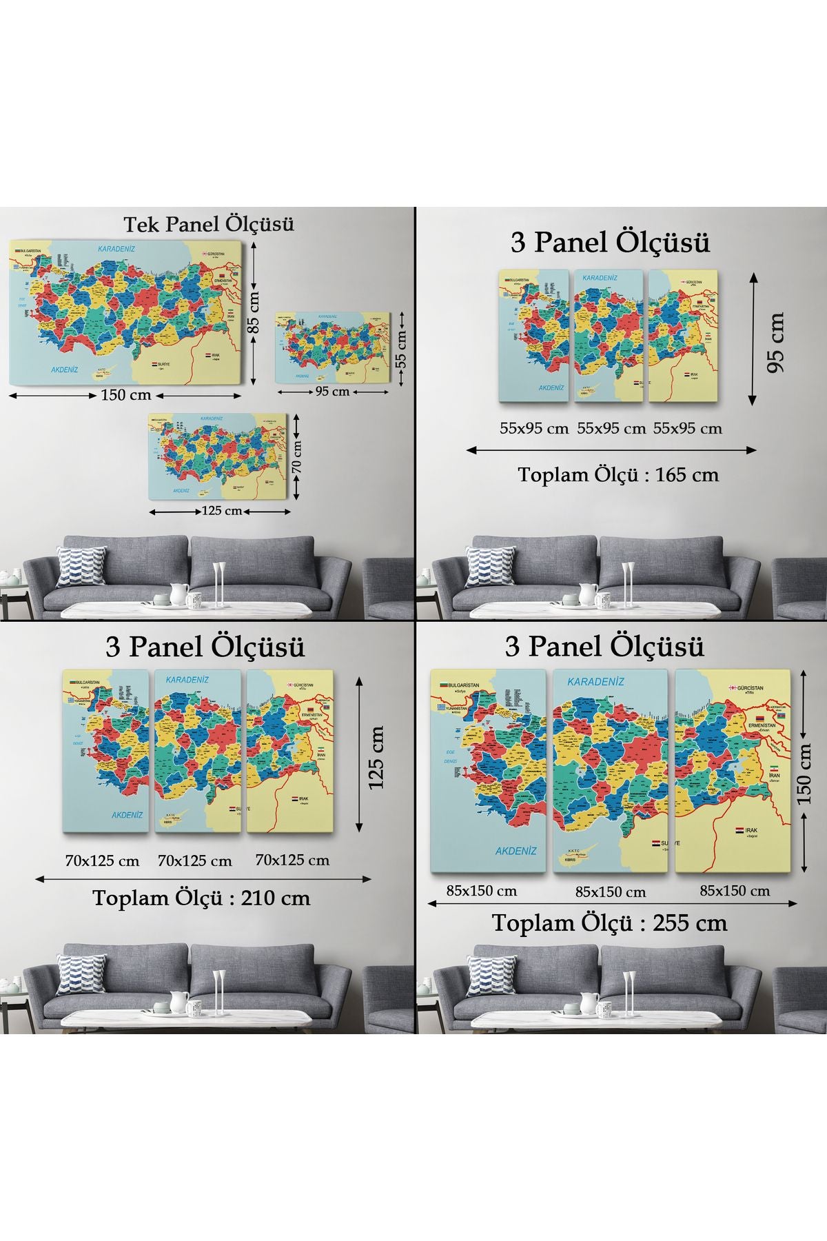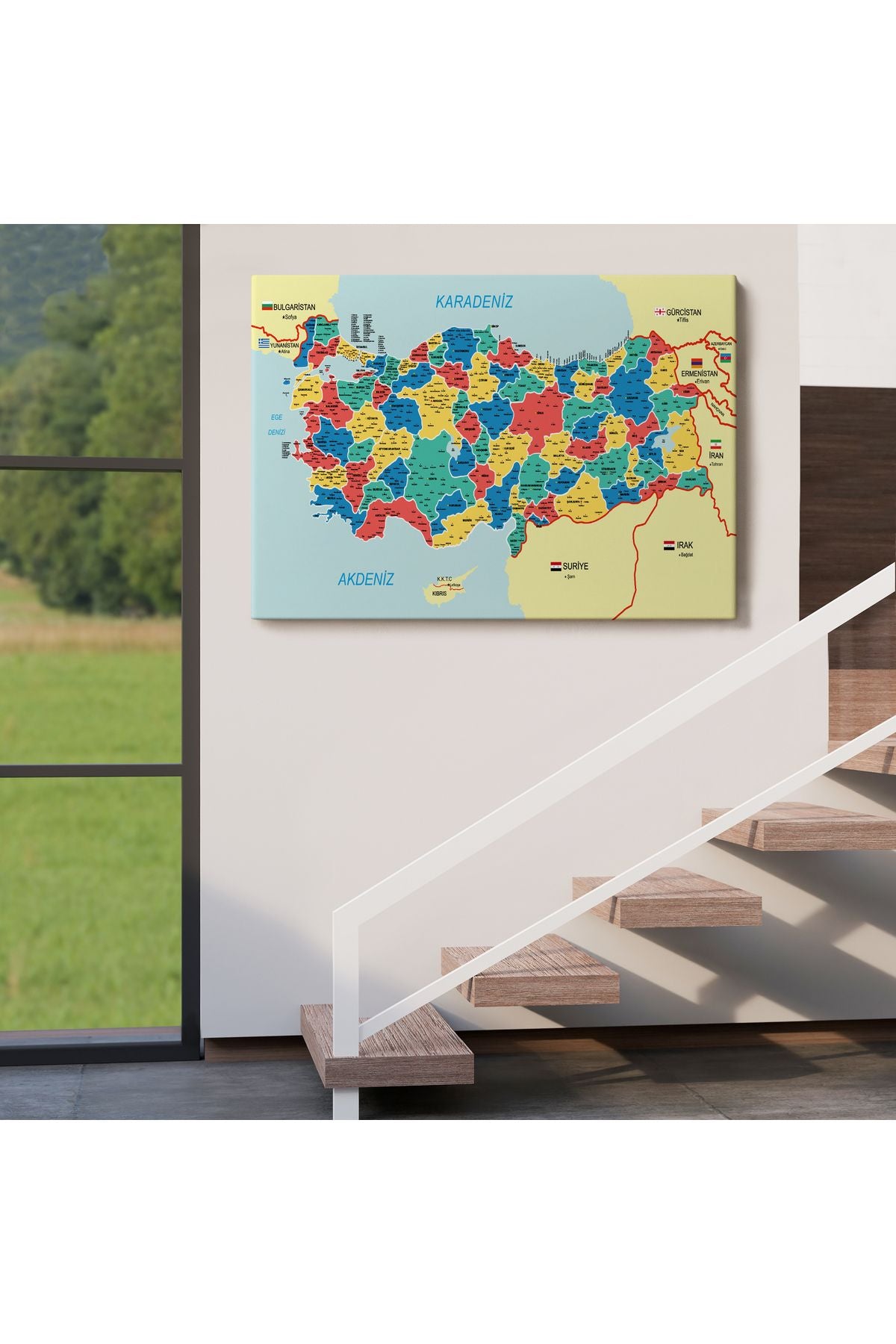 Türkiye Haritası Kanvas Tablo İl ve İlçeli Ayrıntılı Eğitici Komşulu Tablo 3019