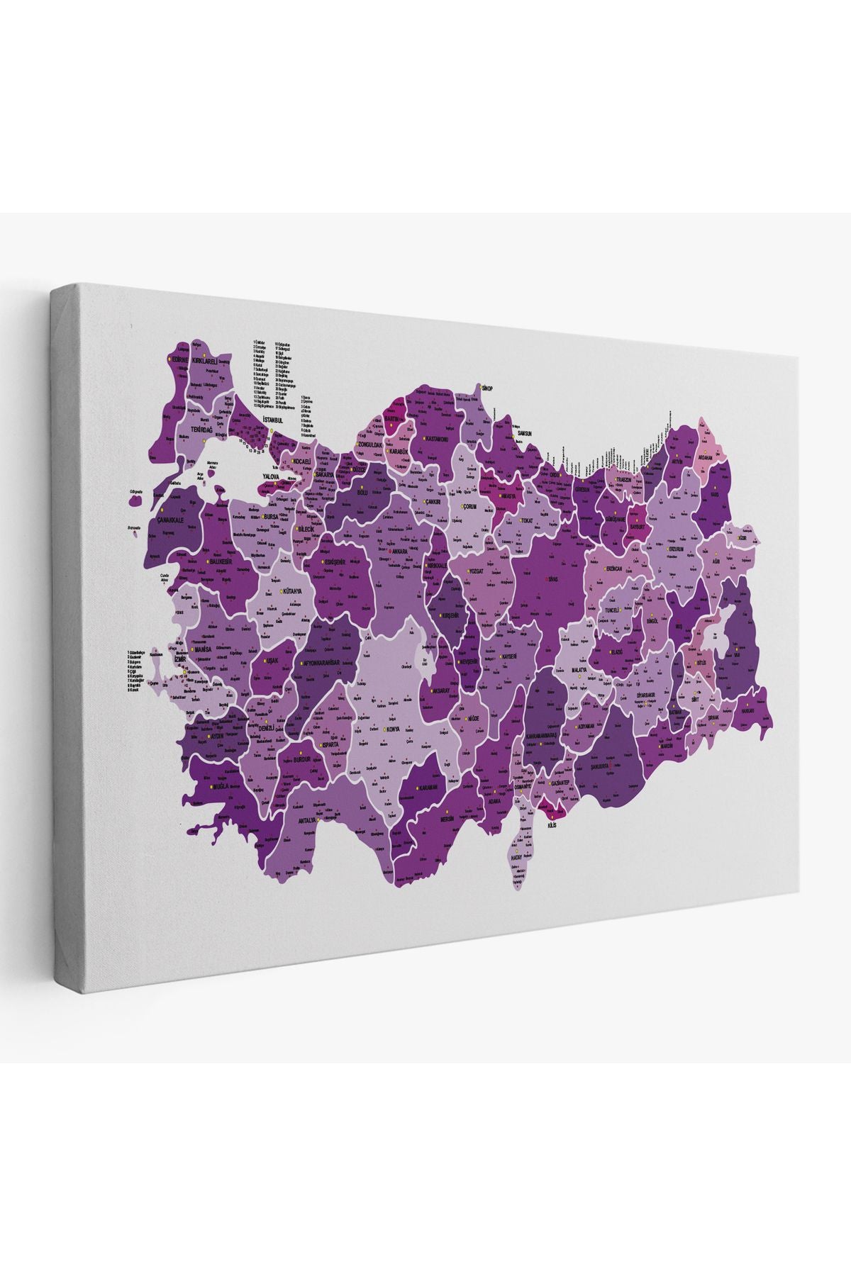 Türkiye Haritası Kanvas Tablo İl ve İlçeli Ayrıntılı Eğitici Dekoratif Tablo 3025