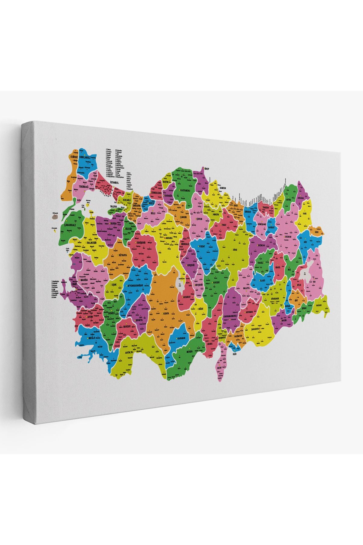 Türkiye Haritası Kanvas Tablo İl ve İlçeli Ayrıntılı Eğitici Dekoratif Tablo 3029