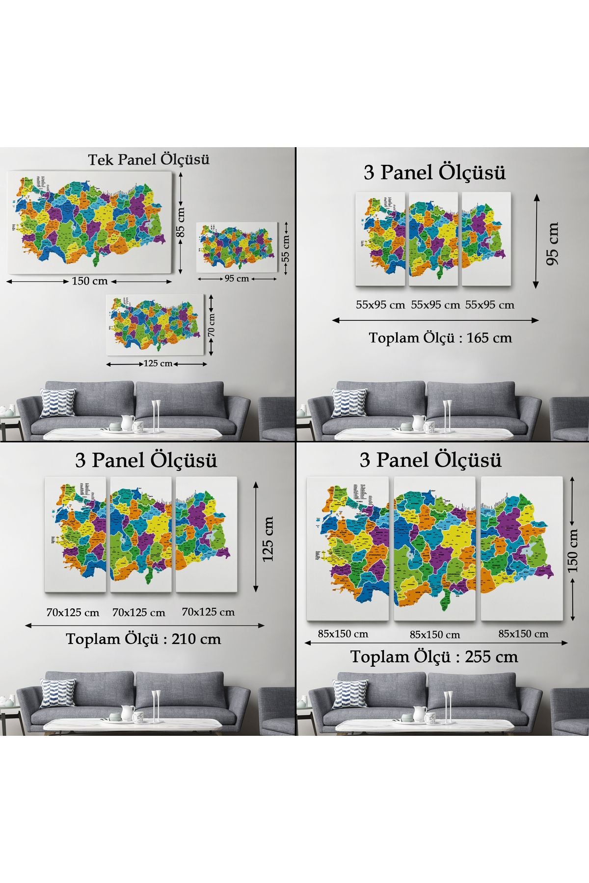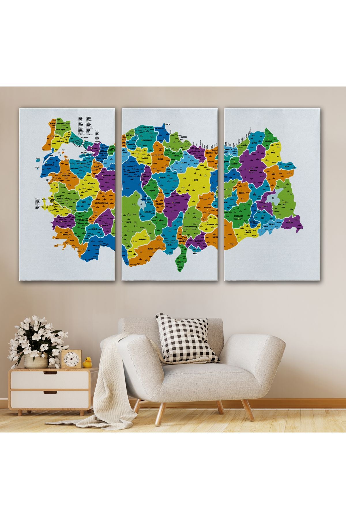 arg001 seri Türkiye Haritası Kanvas Tablo İl ve İlçeli Ayrıntılı Eğitici Dekoratif Tablo 3032