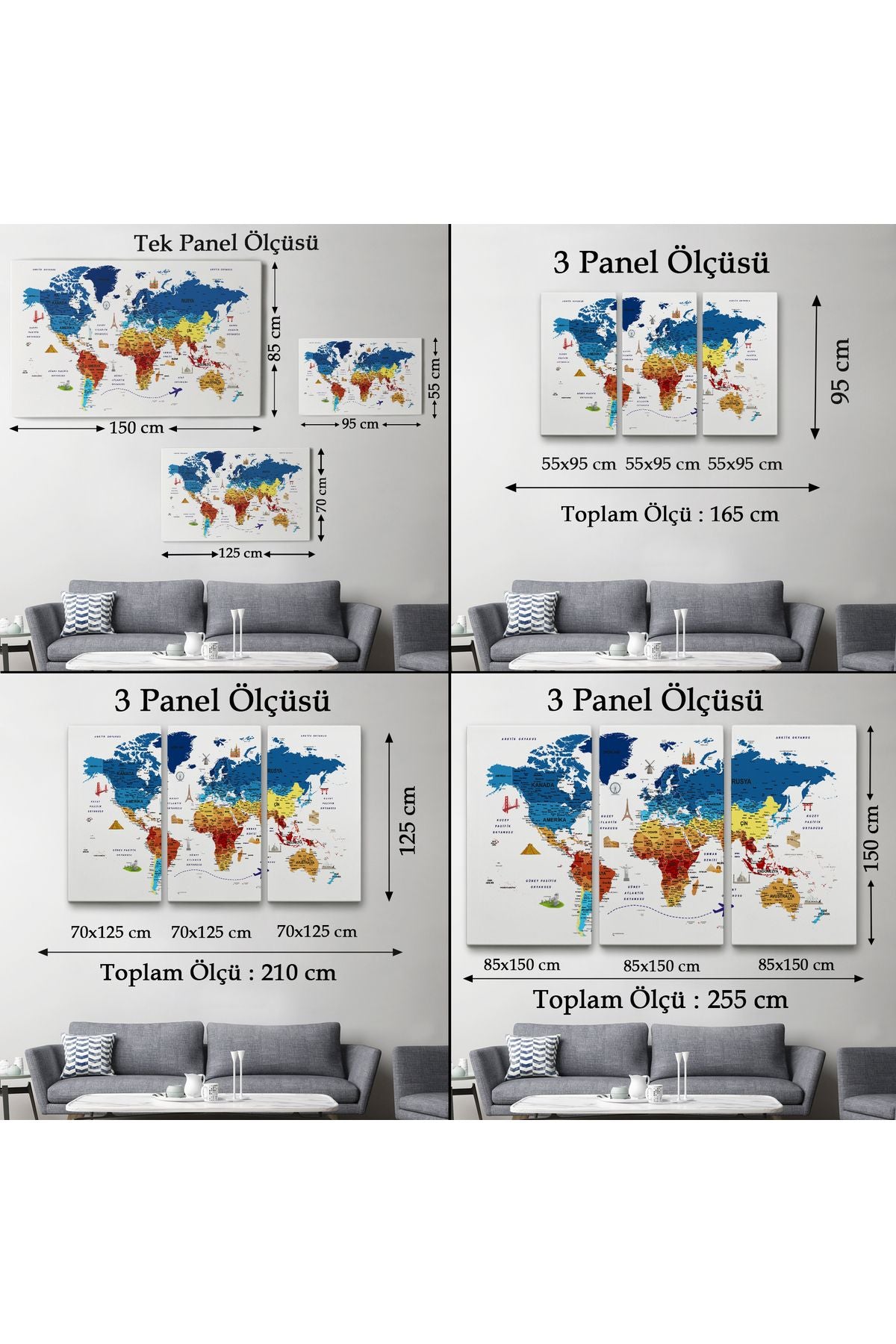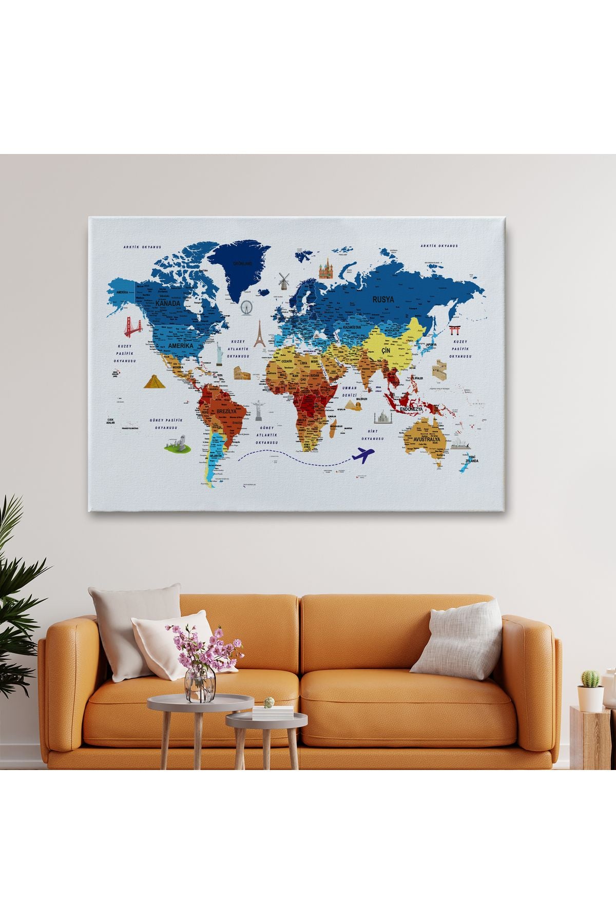 Türkçe Dünya Haritası Son Derece Ayrıntılı Eğitici ve Sembollü Kanvas Tablo 3166
